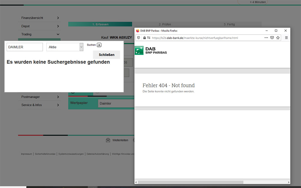 Es gibt überhaupt keine Möglichkeit, Informationen über Wertpapiere zu erhalten. Man kann die nur kaufen zu einem relativ unklaren Kurs. Nach WKNs kann man auch nicht suchen. Ich habe beispielsweise versucht, Daimler-Aktien zu finden. Da findet er nichts. Das ist ja wohl das schlechteste System für Aktienhandel was ich je gesehen habe.