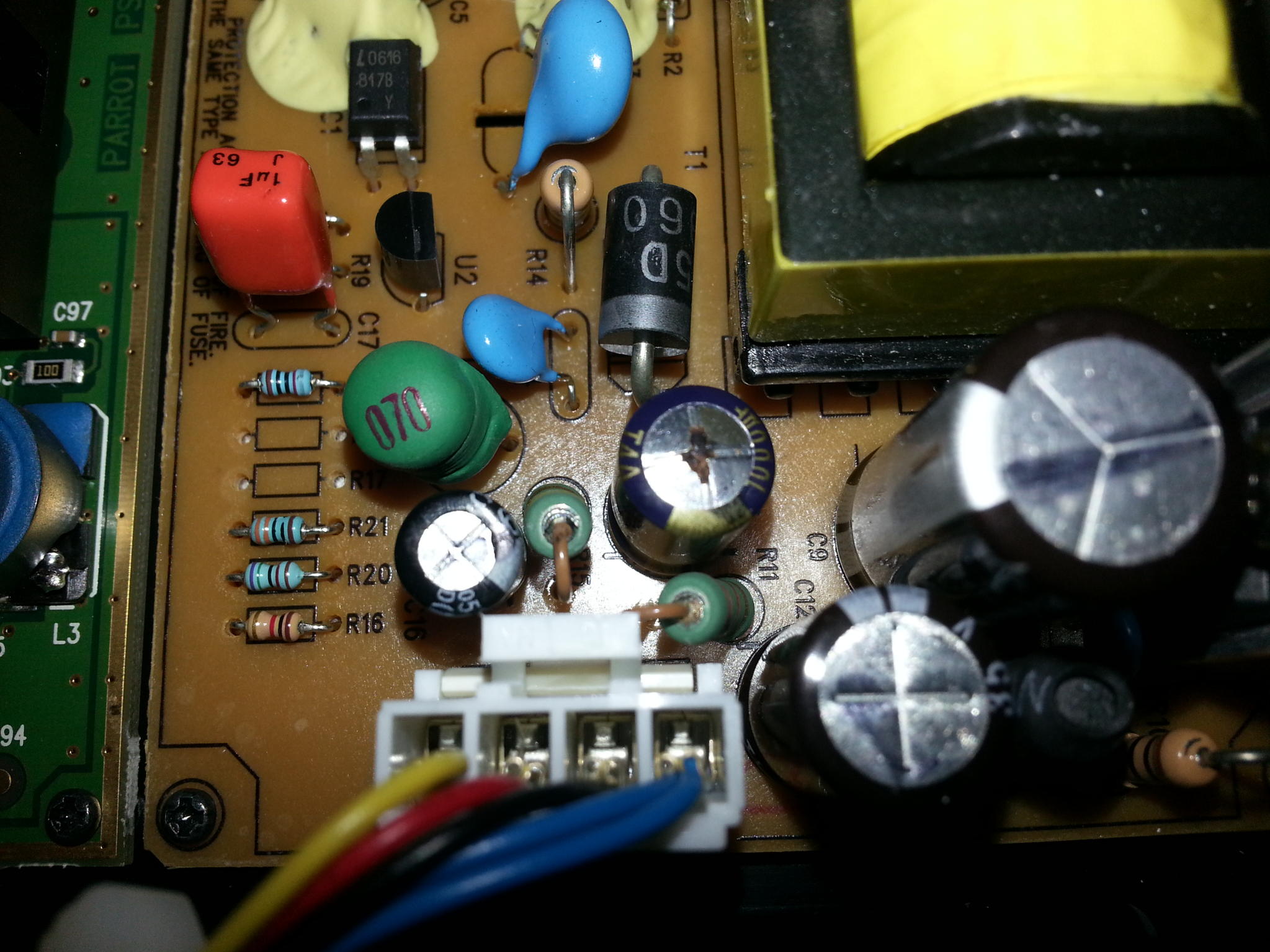 spacer1971 schrieb:In der Bildmitte ist ein aufgeblähter Elko, das braune Zeug ist Kondensatorflüssigkeit, der ist kaputt.