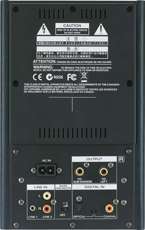 - 20 Watt Class A/B Verstärker pro Kanal (linke Box aktiv)