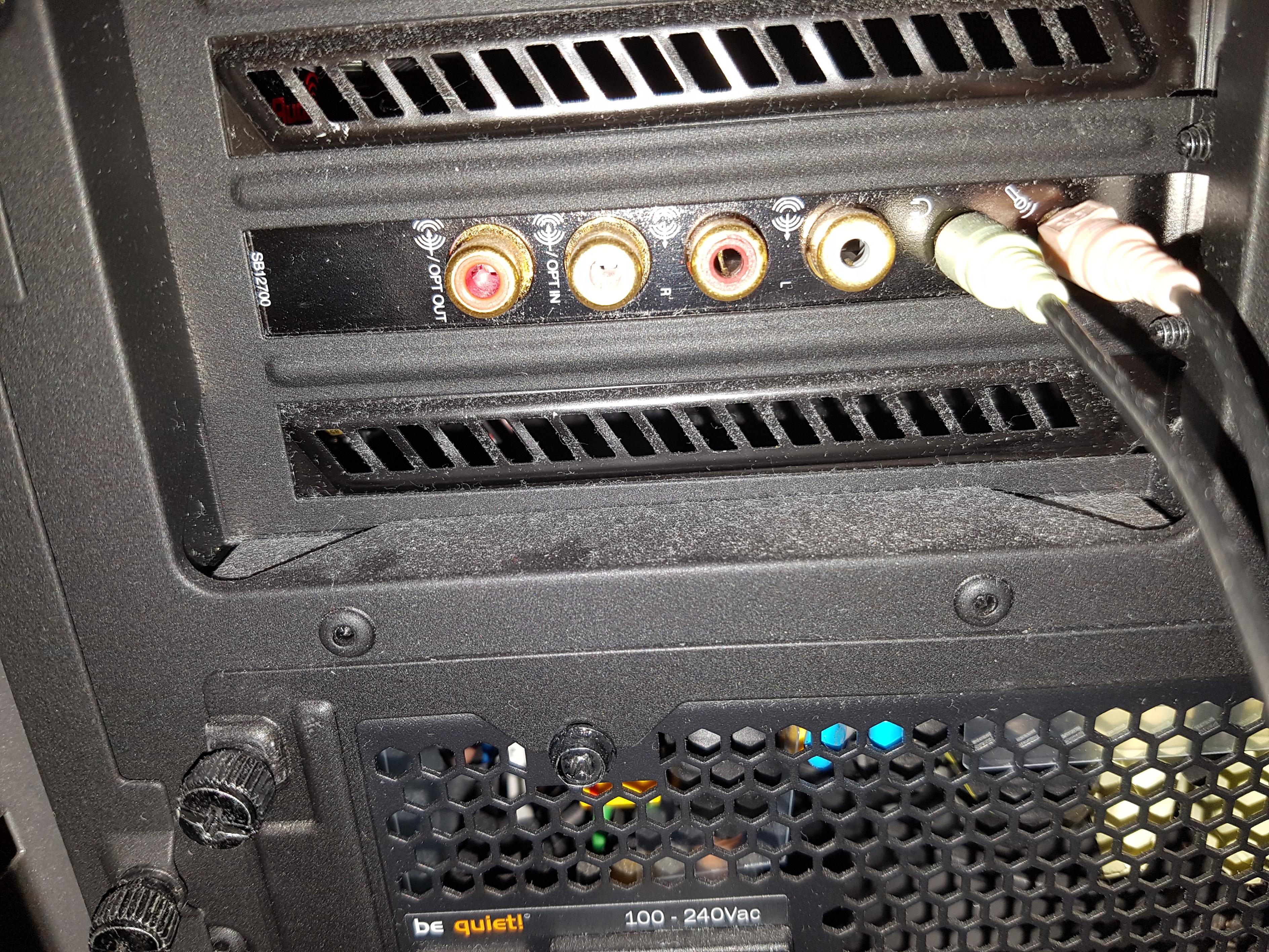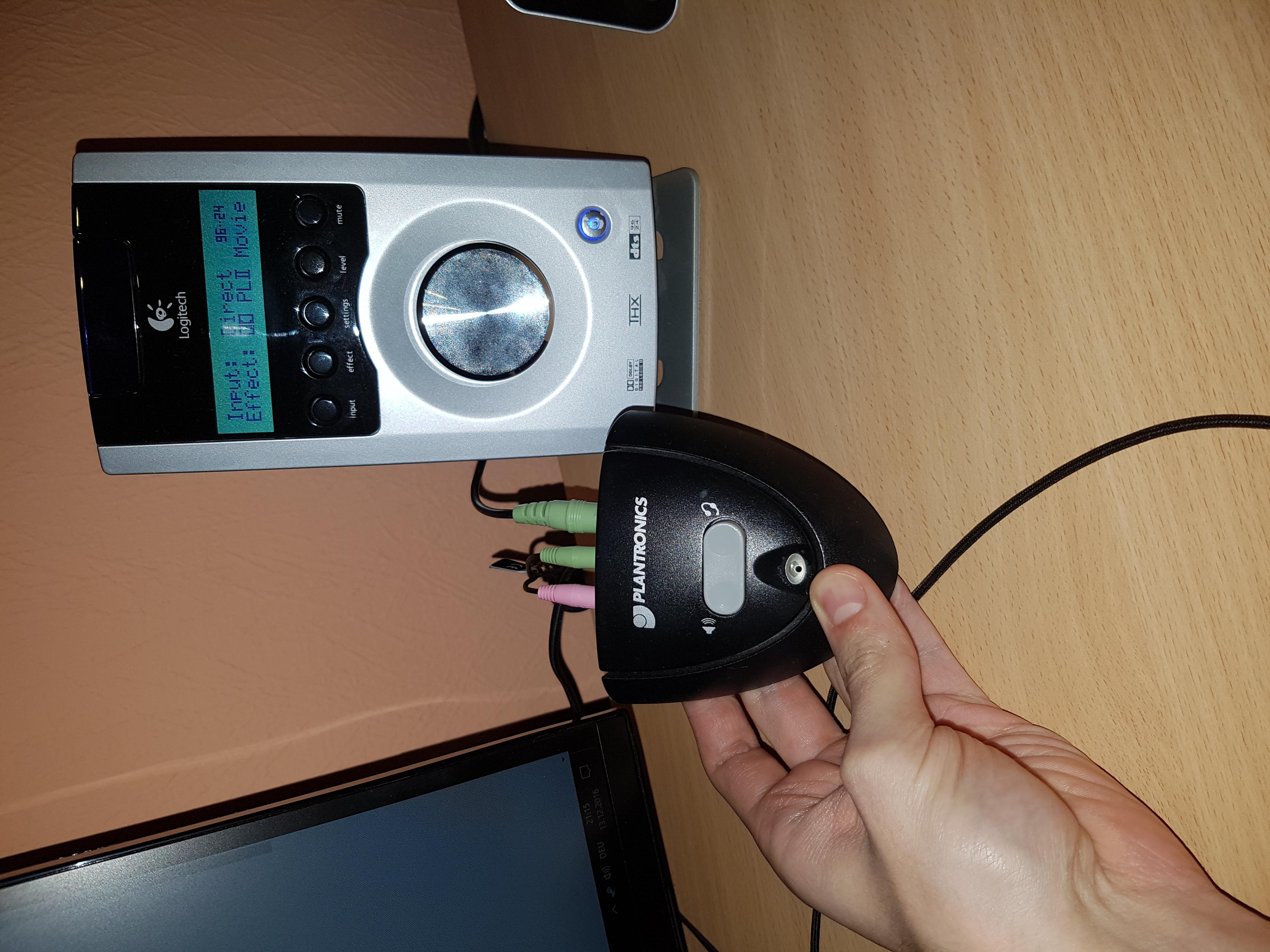 Im Moment habe ich meinen Audioswitch im Kopfhörer Eingang der Soundkarte (Creative X-FI Titanium HD) und dort steckt mein Headset + Logitech Boxen.
