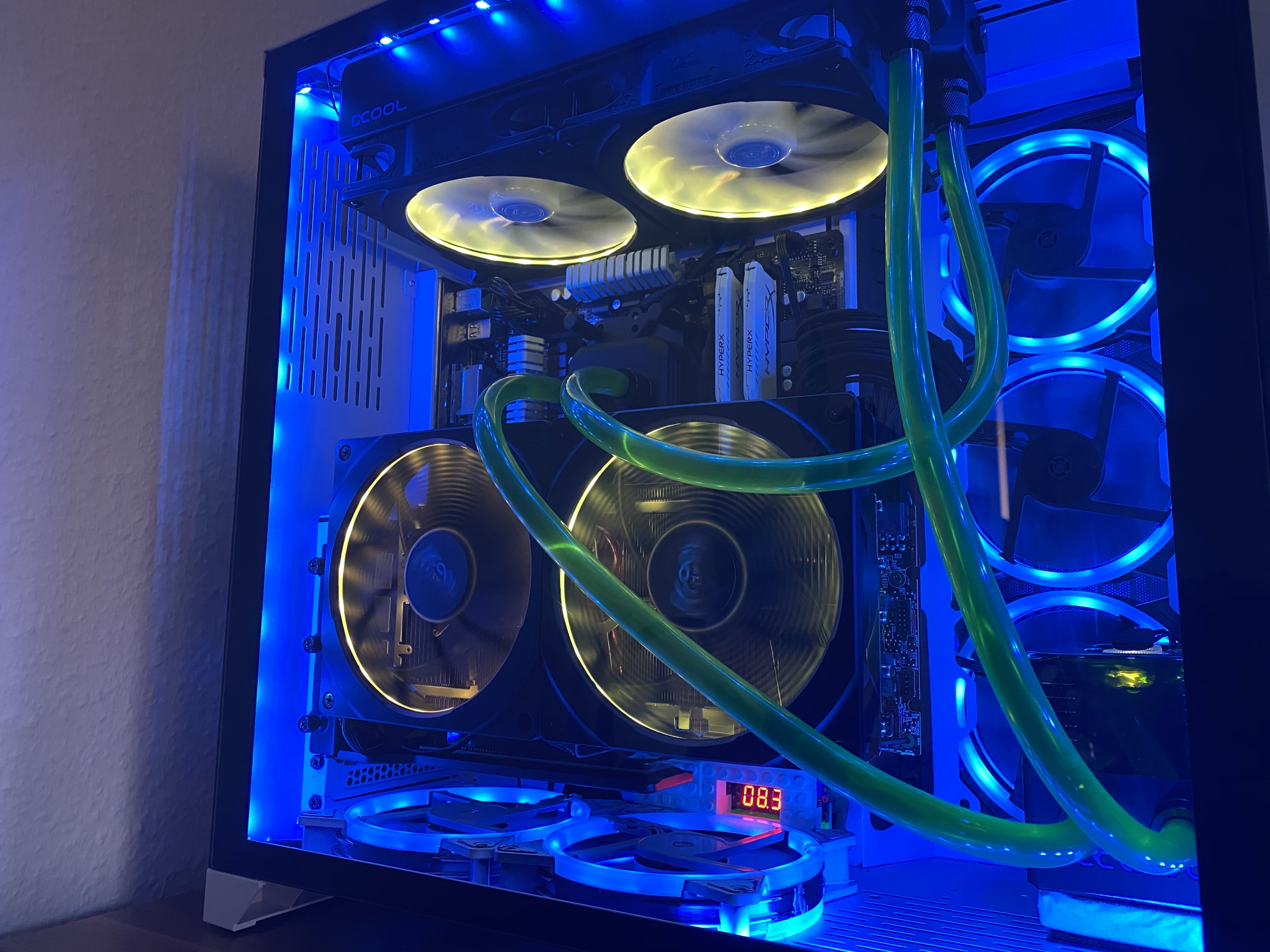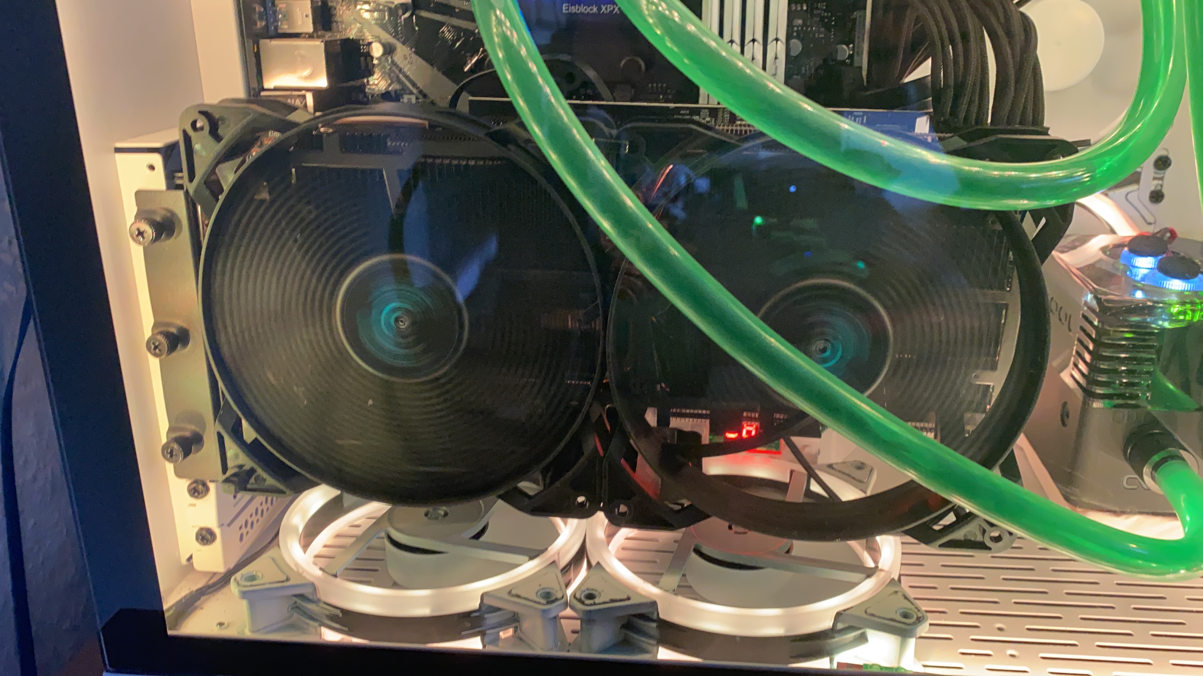 Soll heißen Lüfter über 700 rpm sind tabu, entsprechend auch alle normalen Grafikkarten-Kühler.