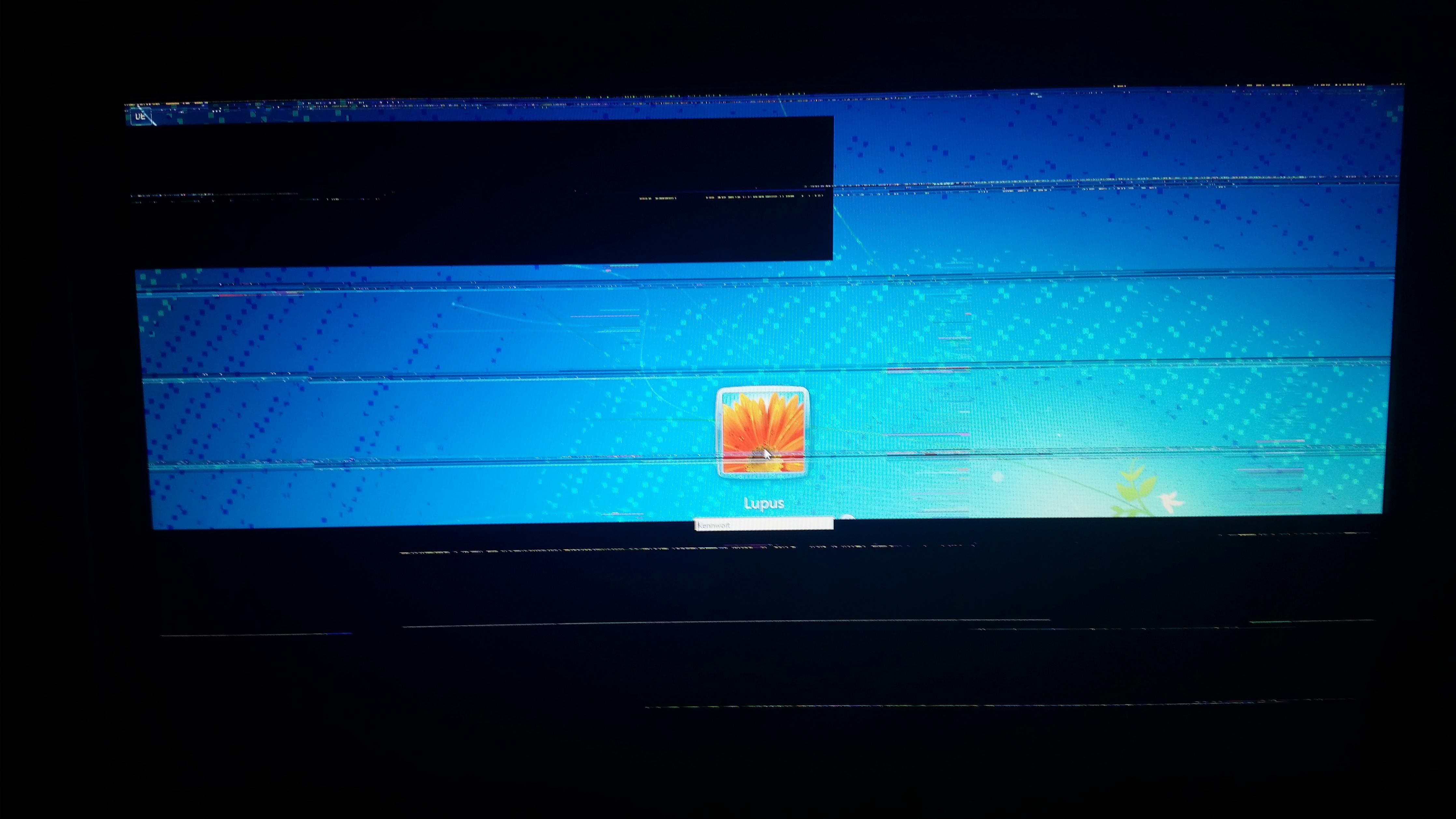 Vor wenigen Tagen stürzte mein PC ab. Seitdem treten schwere Grafikfehler auf (Siehe Anhang). Nach Einloggen nur noch schwarzes Bild. Abgesicherter Modus funktioniert mit Farbfehlern.