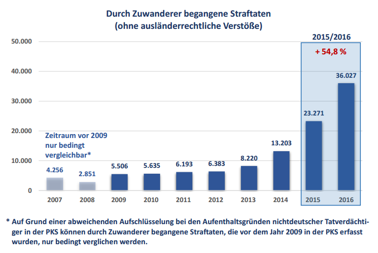 Und wieviele dieser Straftaten beziehen sich auf Straftaten Asylsuchender untereinander? Hast du die PKS im Detail gelesen oder zitierst du nur schmissige Schaubilder? Möchtest du in der Debatte denn inhaltlich differenzieren oder nutzt du die Gelegenheit zum allg. Flüchtlingsbashing? Ich frage deshalb, weil die die PKS - sofern man sie im Detail studiert - zu sehr differenzierten Ergebnissen kommt, was Flüchtlingskriminalität angeht. Herkunft der Flüchtlinge, Altersstruktur etc.