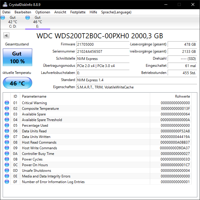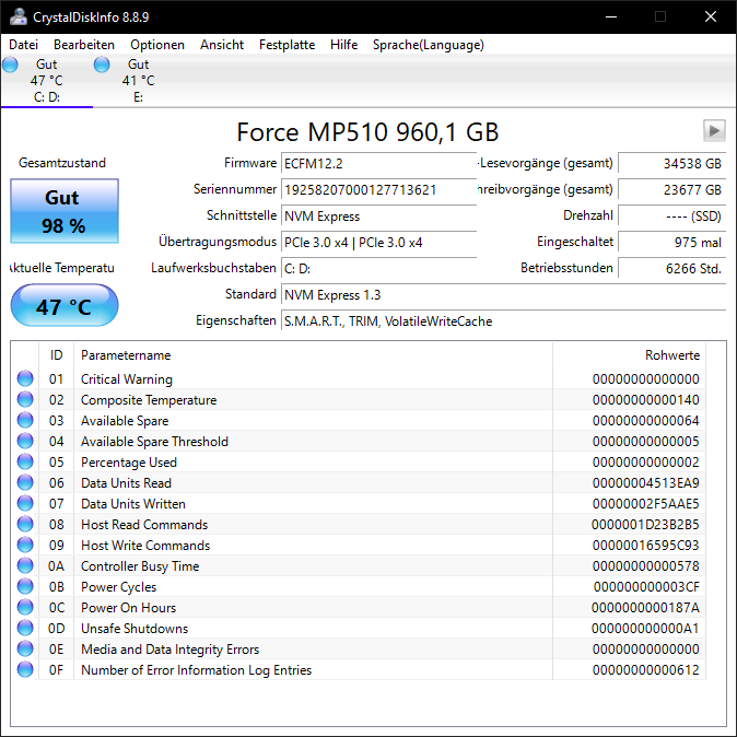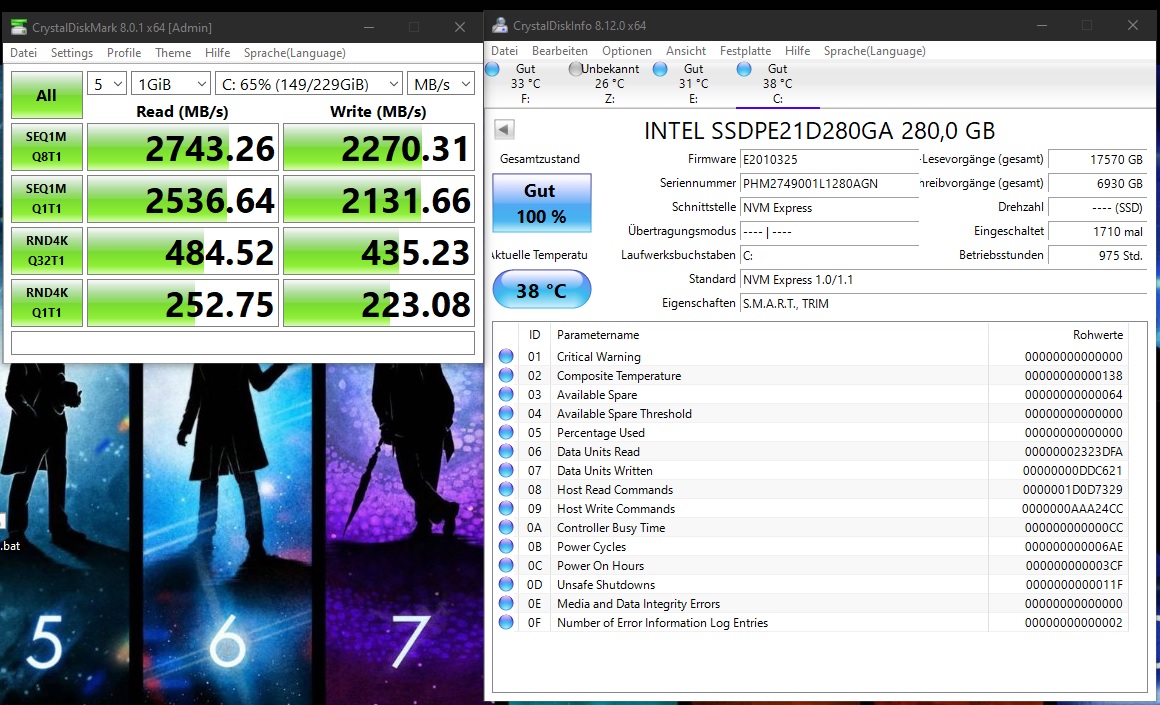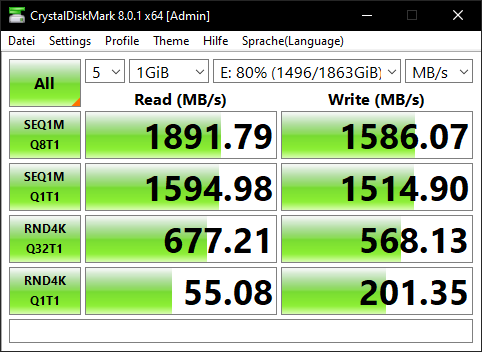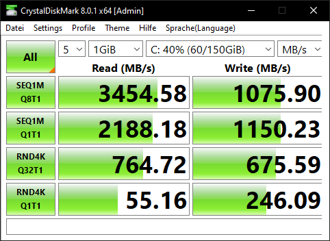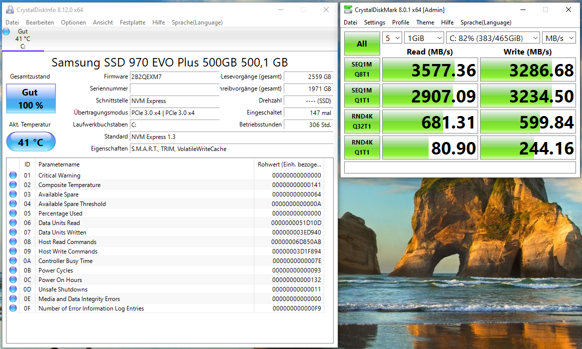 System: Samsung SSD 970 EVO Plus 1TB 1000,2 GB, ≤ 50 %, PCIe 3.0 x4