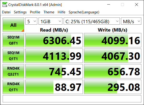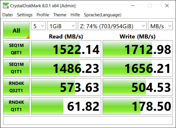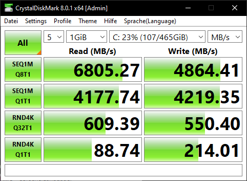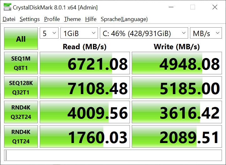 System: Samsung SSD 980 PRO 1TB 1000,2 GB,≤ 75 %,SL,PCIe 4.0x4, AMD