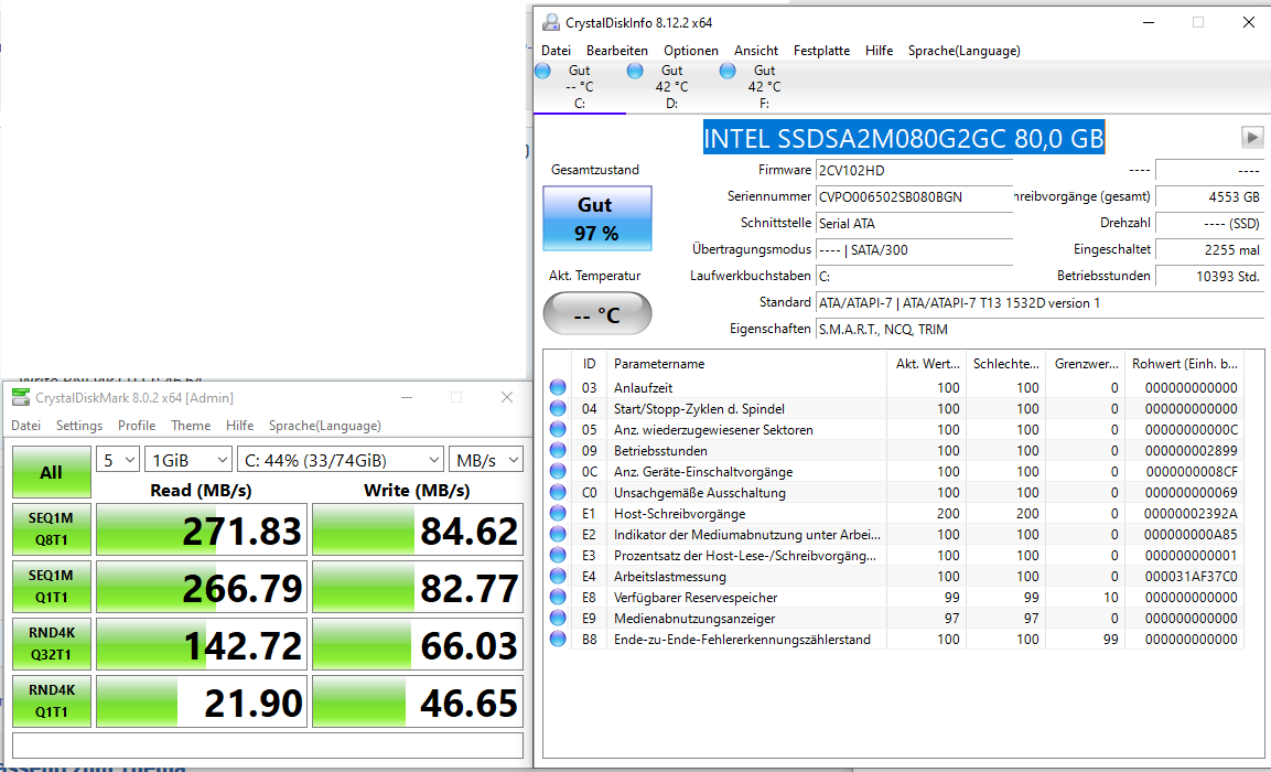 System: SK hynix SC308 SATA 256GB 256,0 GB, ≤ 90 %, SL, SATA/600, Intel