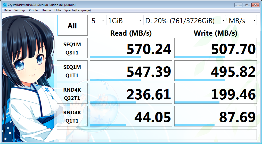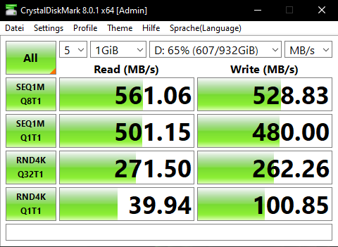 System: Samsung SSD 850 EVO 500GB 500,1 GB, ≤ 50 %, DL, SATA/600, Intel