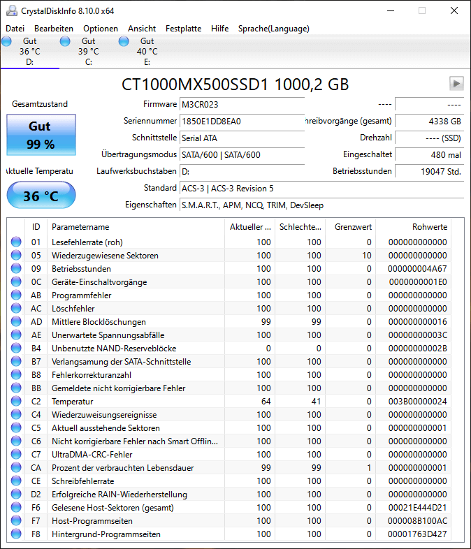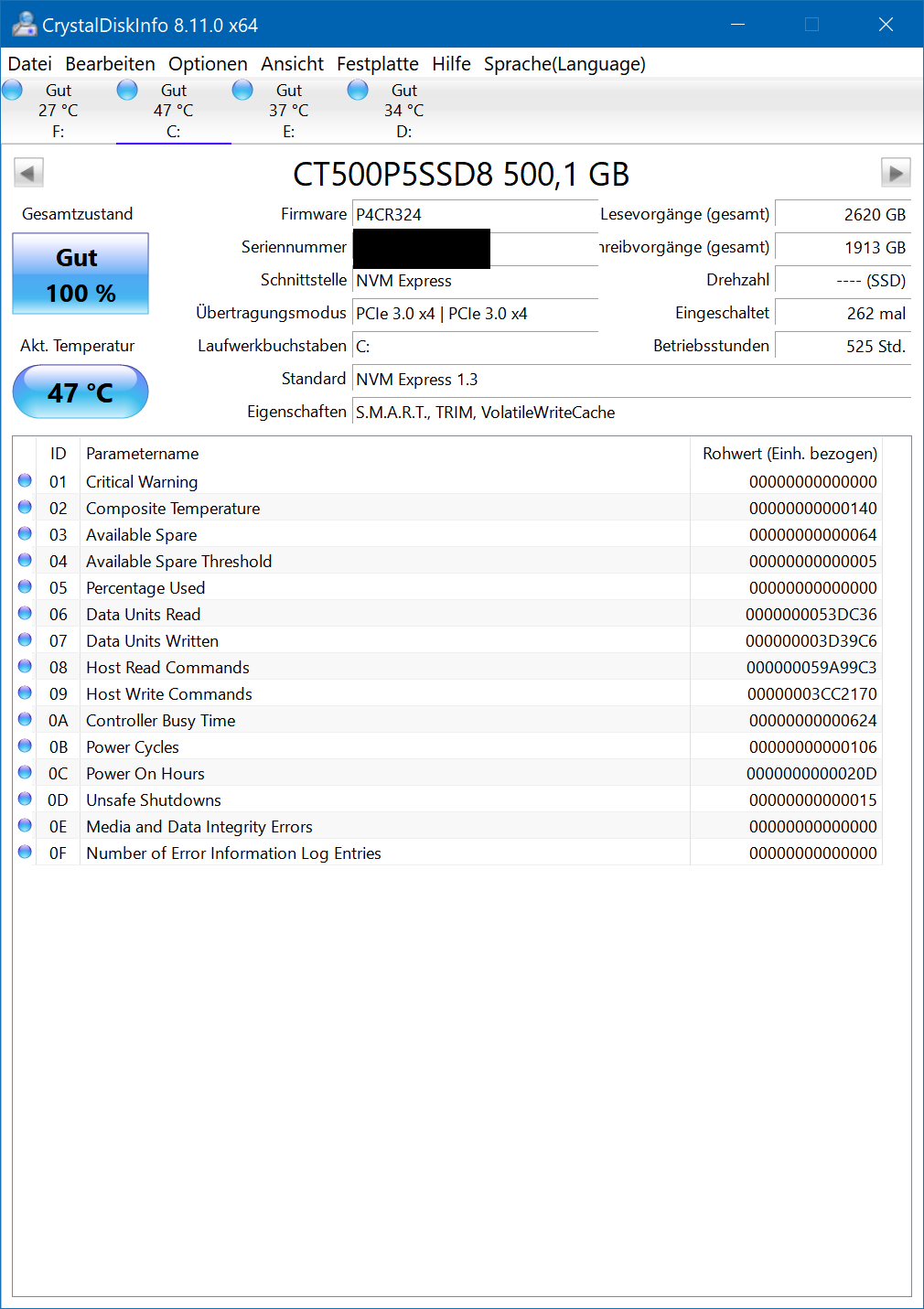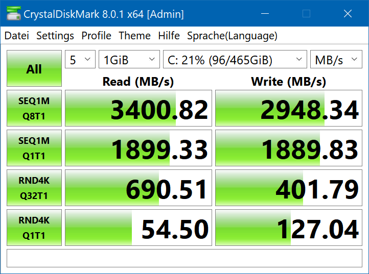 System: WDC WDS500G2B0B-00YS70 500,1 GB, ≤ 50 %, DL, SATA/600, AMD