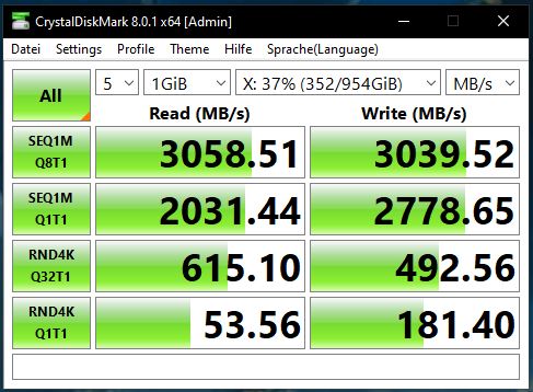 System: Samsung SSD 980 PRO 2TB 2000,3 GB, ≤ 50 %, SL, PCIe 4.0 x4, Intel