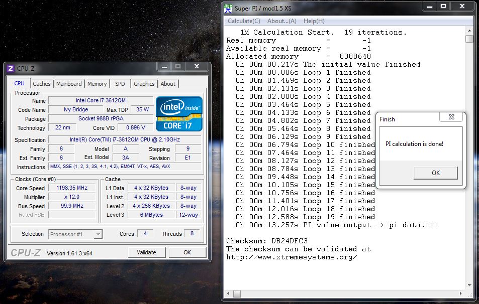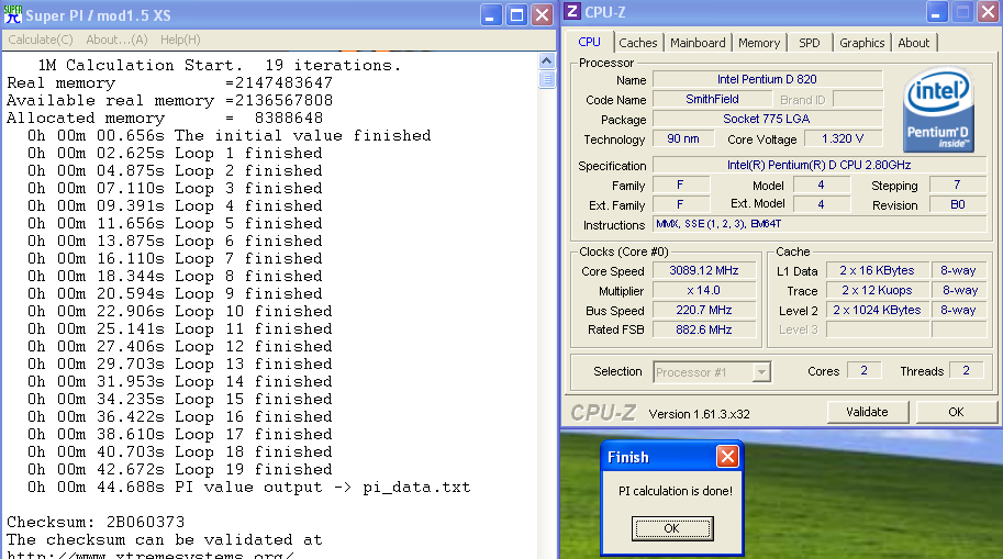Warum immer diese Steinzeit Programme? Hab leider nurn Linux hier, aber der y-cruncher laeuft auf Windows und Linux. Hab mal einen 1M Run damit gemacht.