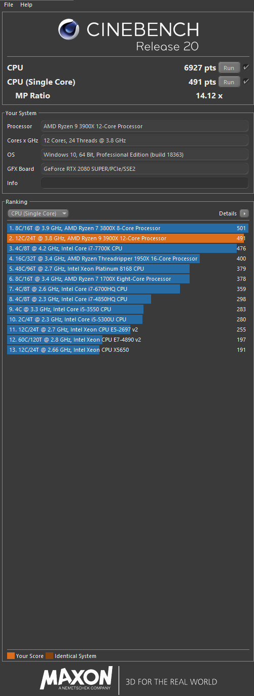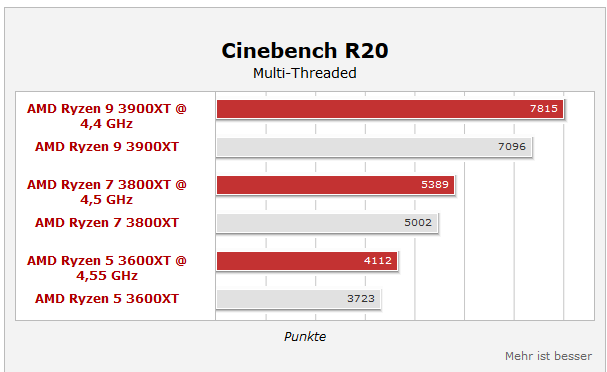 Die in der Liste aufgenommenen Werte für den 3950x liegen zwischen 8888 Punkten und ca. 10000 Punkten.