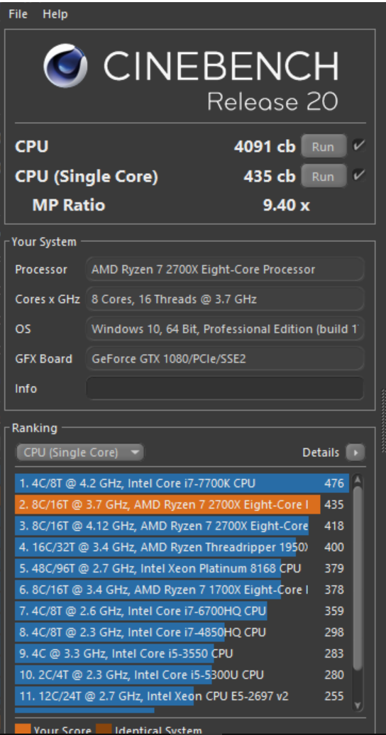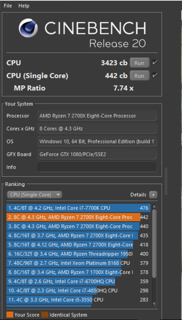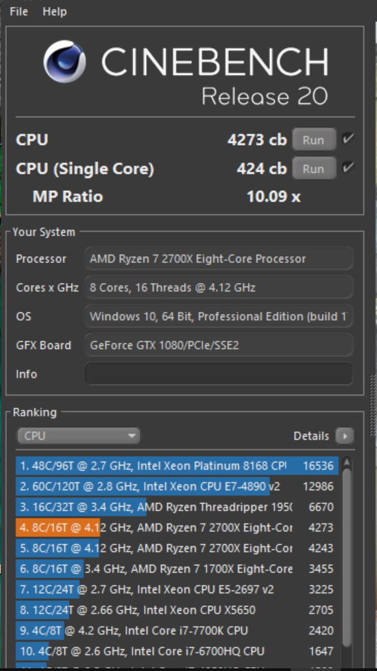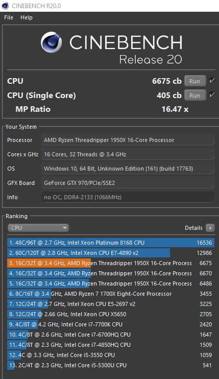 Ich frage mich ja wieso der Threadripper 1950X @ Stock ~200 Punkten (Multi-Core) weniger hat als meiner. Dabei ist mein RAM vermutlich nicht gerade optimal für ein Threadripper, nur langsame 2400MHz.
