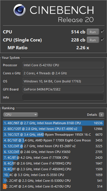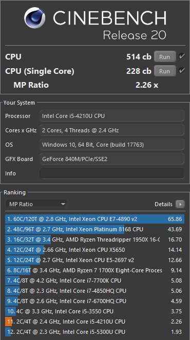 Das war mein Ziel, ganz unten zu landen und dann sehe ich Deinen Post Bin aber überrascht zu sehen, dass meine CPU im SC anscheinend mehr Power als ein Xeon E7-4890 hat.