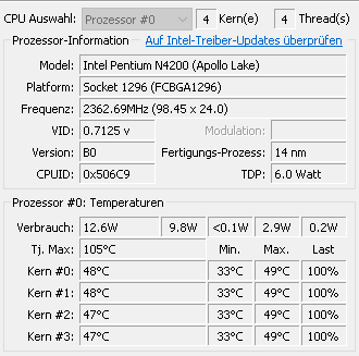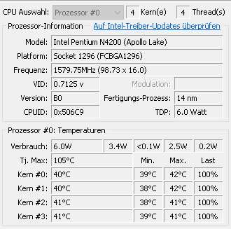 Bei mir klebt der i7-8550U bei 4 GHz. Auch nicht weiter verwunderlich, da es ja nur ein Kern ist. Das Limit setzen Temperatur und Stromverbrauch und da kann der Turbo im Single-Thread-Betrieb voll loslegen. Bei 4C/8T sind es anfangs 3,2-3,5 GHz und zum Ende dann 2,6-3 GHz. Ohne Undervolting und WLP-Tauschen jeweils so 400-500 MHz weniger.hRy schrieb:Ich finde es erstaunlich welche Single Score bei den Mobile CPUs erreicht wird.