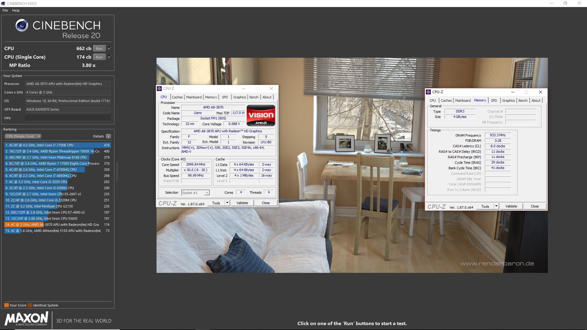 Der ist 13% (3.62GHz) übertaktet und nicht @Stockaklaa schrieb:AMD Phenom II X4 955@ Stock 3,2GHz 783 und singel 203 @DDR3 8GB RAM 9-9-9-24