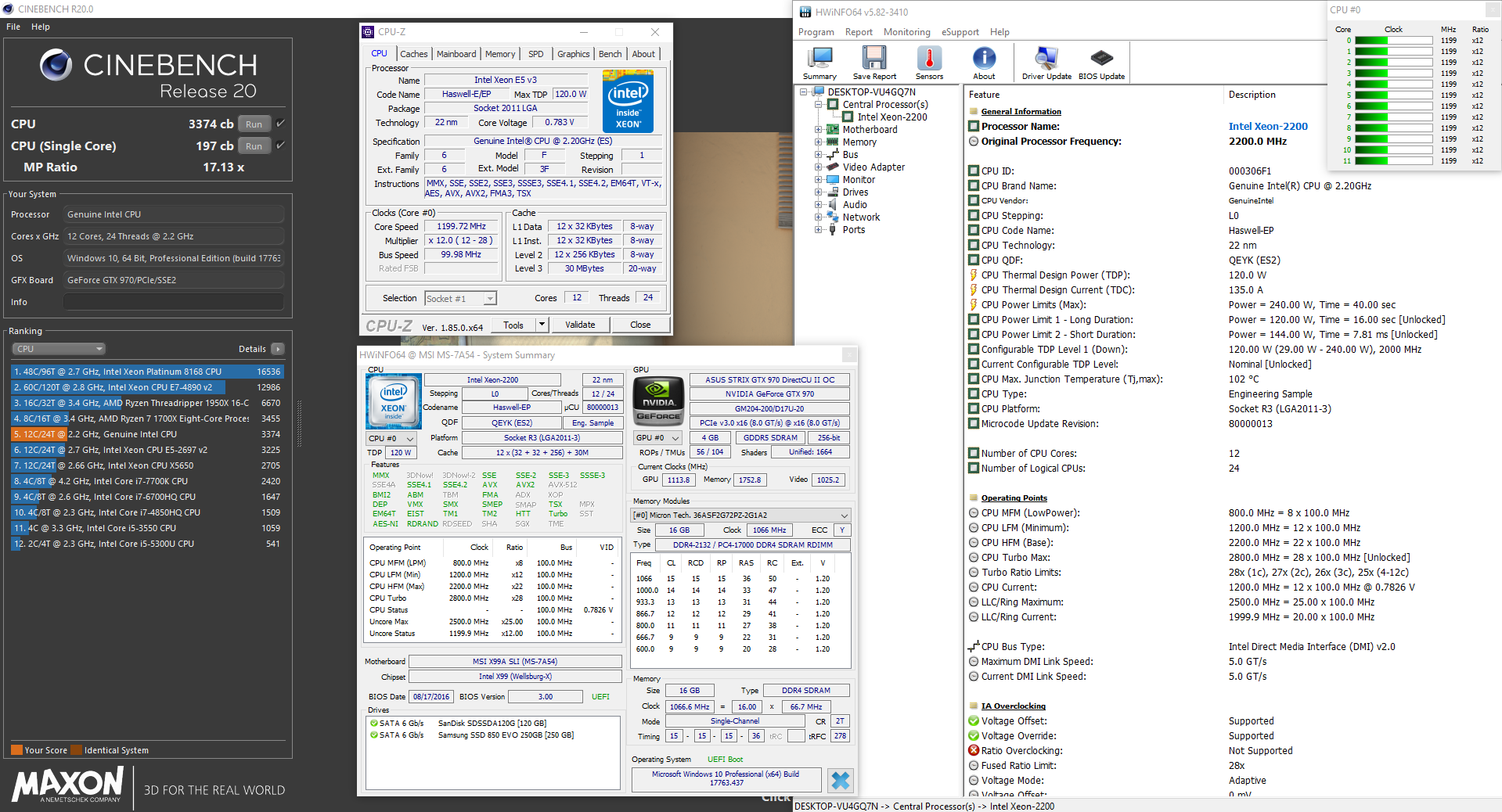 System: Intel Xeon E5 v3 ES, 12C/24T 2.2/2.8 GHz