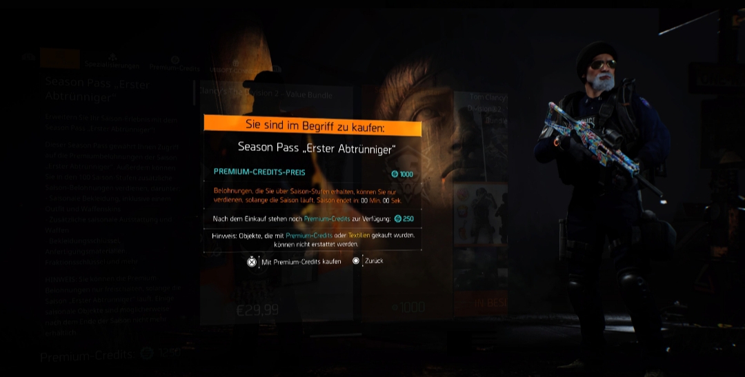 wenn ich mir Menü Komma vor dem Spiel den season Pass kaufen möchte, dann steht dort läuft ab in 0 Minuten und 0 Sekunden.