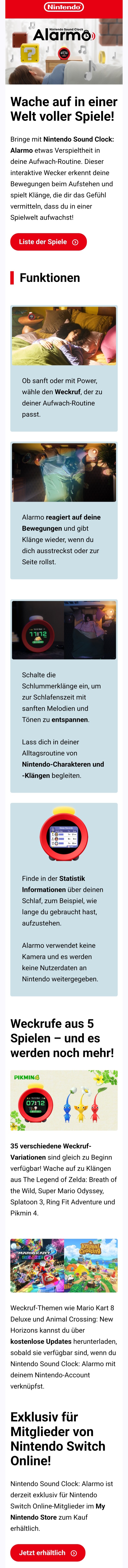 Das würde ich Grundsätzlich unterschreiben, aber das du ein Nintendo Abo brauchst ist der Punkt wo das ziehen im nacken anfängt. Für einen WECKER!FU_long schrieb:Woah, viele sind hier heute aber besonders unentspannt.Ob sich jemand diesen Nintendo Wecker hinstellt oder nicht, ist ja völlig egal. Nein, wirklich. Komplett wurscht. Es gibt hier keine Metaebene, keine tiefere Bedeutung. Nichts.
