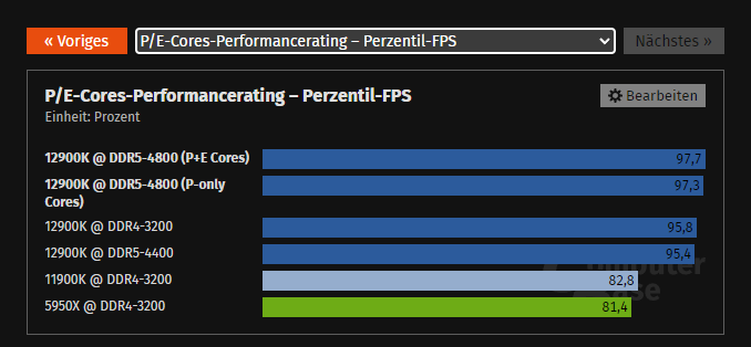Ich hab mich gerade gefragt wie es bei dem Perzentils aussieht, hier wirken sich ja häufig "Unsauberkeiten" der CPU erst richtig aus. Aber hier liegen die E-Cores sogar vorne.