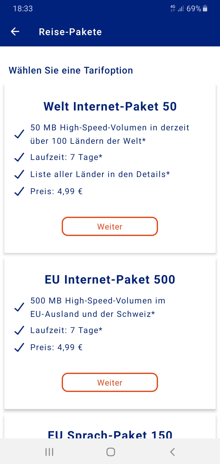 Hab schon beides gebucht EU&Welt Option, geht einfach, man muss nur ggf Roaming erlauben um die App nutzen und buchen zu können wenn man Internet Roaming abgeschalten hat, bzw man macht es über Wlan wenn das gegeben ist.