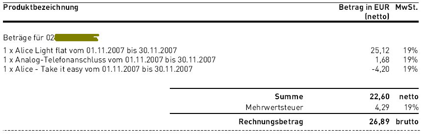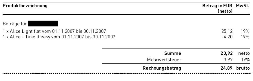 bin seit etwas mehr als einem Monat Kunde bei Alice. Ich habe den Alice Light Tarif mit der DSL Flatrate. Dafür zahle ich eigentlich 24,90 Euro pro Monat.