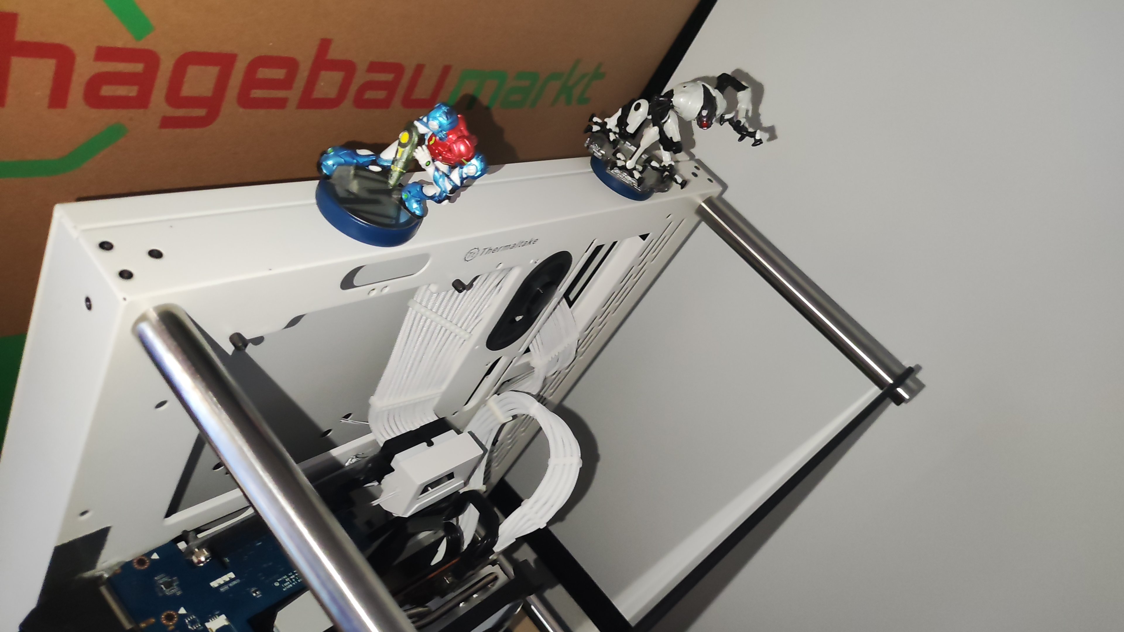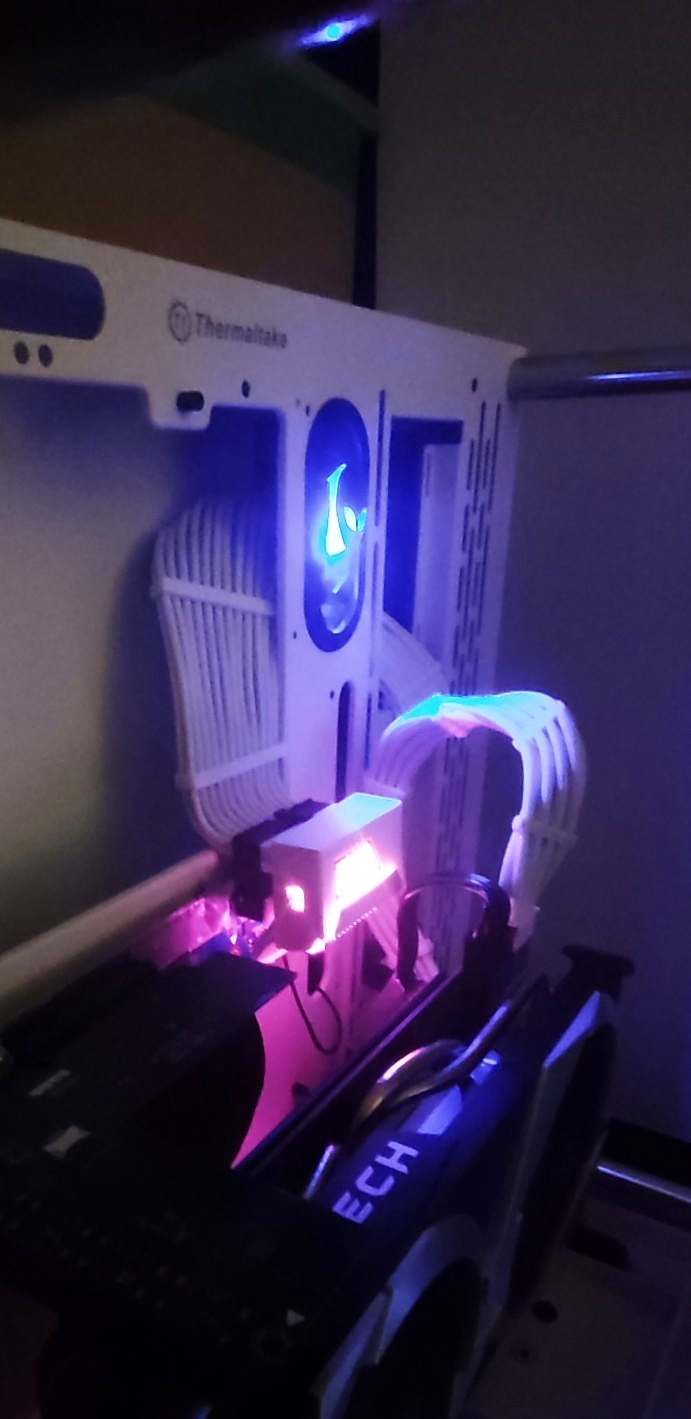 Ich habe eine kleine Modifikation durchgeführt und wollte sie mit euch teilen. Ich habe das originale beleuchtete Alienware-Logo (inklusive der originalen Mini-LED-Platine) aus einem Alienware Graphics Amplifier genommen und in ein Thermaltake-Gehäuse verpflanzt. Anstatt es einfach irgendwo hinzukleben, habe ich es in eine der ovalen Kabeldurchführungen aus Gummi im Gehäuse integriert. Das hat mir Folgendes ermöglicht:· Alle Kabel sauber hinter der Blende zu verstecken