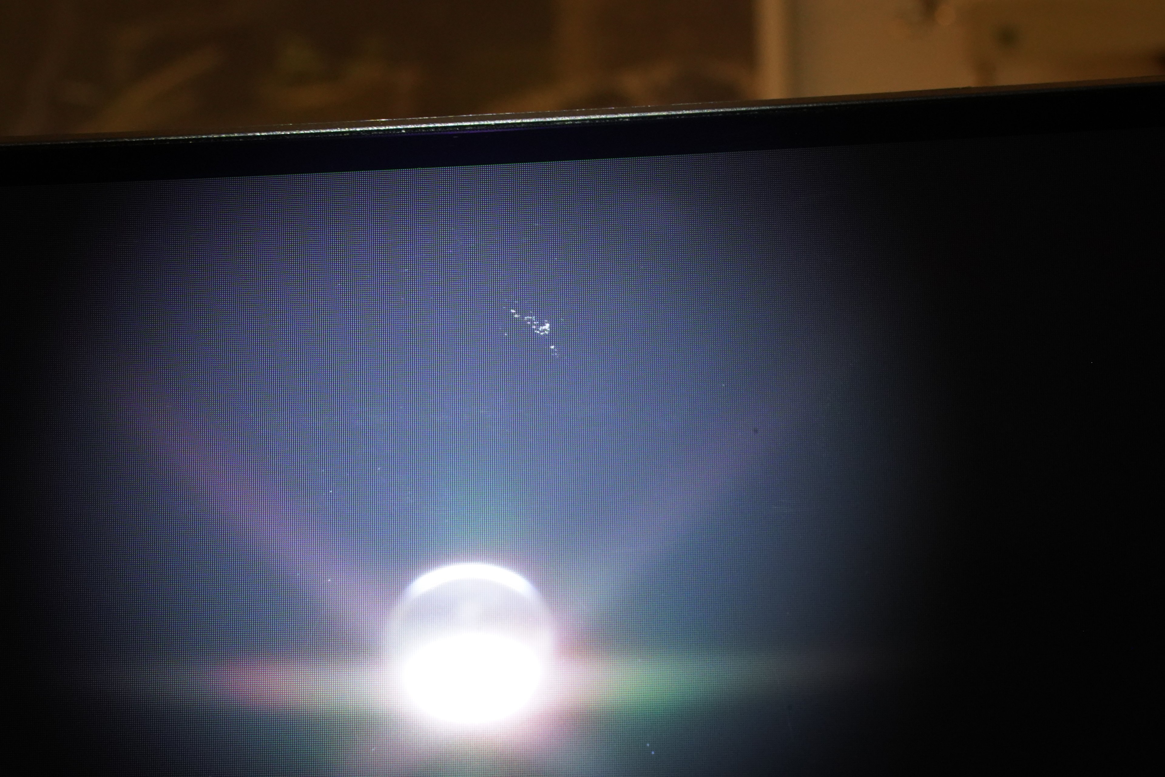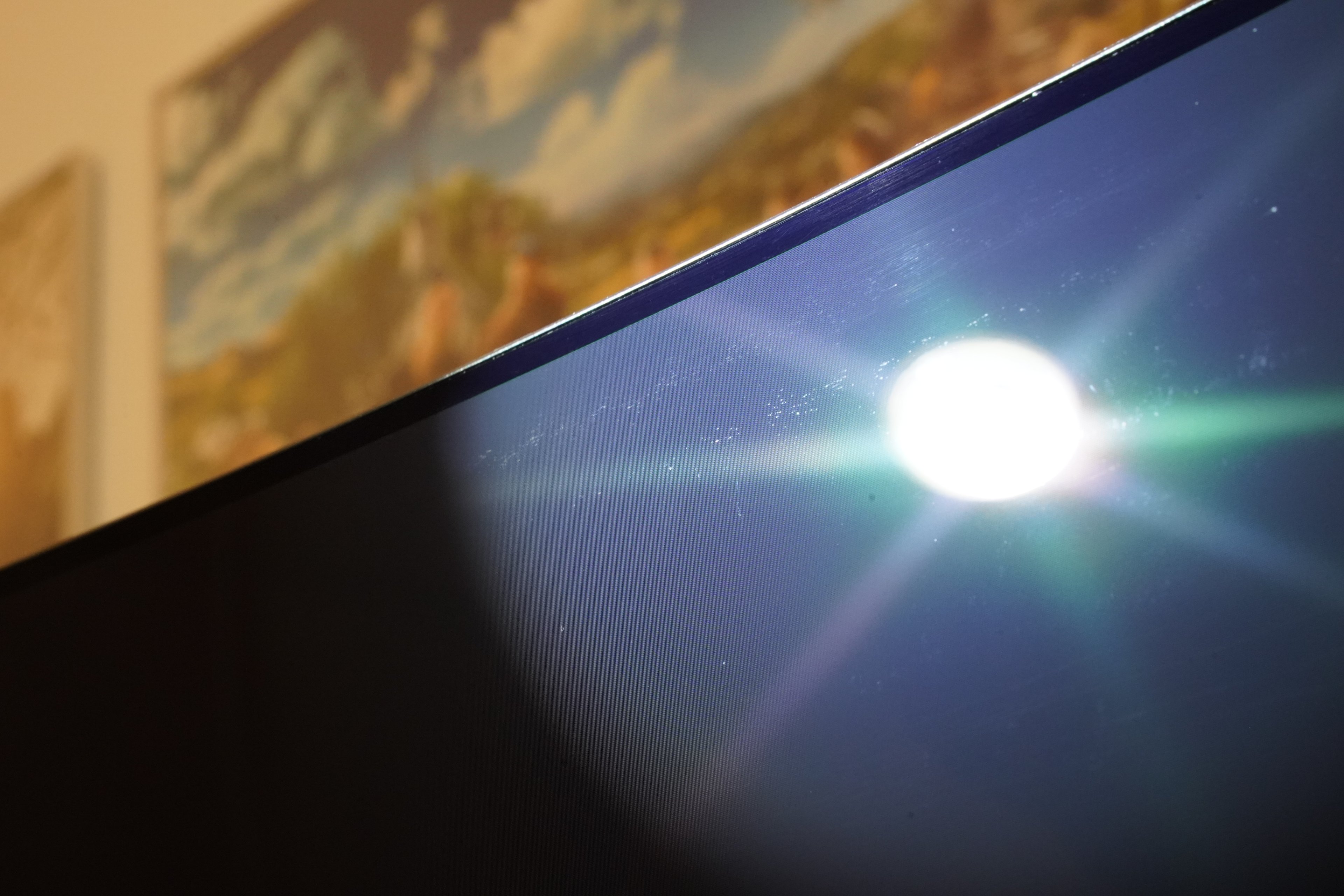 Achtung! Mein vorgehen mit der Taschenlampe zeigt schon das man es schon gezielt "hervorheben" muss um es sichtbar zu machen. Im Normalbetrieb ist es minimal bis gar nicht sichtbar. Es mindert aber definitiv den Wiederverkaufswert, und sollte generell bei einem neuen Produkt so nicht vorkommen.