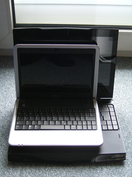 Als Vergleichsmodell zur Größe konnte ich mir nur ein 9" Dell Inspiron (oder wie auch immer die heißen) meines Vaters heranziehen. Das Dell Inspiron ist aber auch schon etwas älter. Außerdem war ich gleich vorgestern mal in der Uni bei einer Probevorlesung. Das Netbook war natürlich auch im Vergleich zu dem Asus 1000PE von einem Freund größer, schwerer, dicker. Zum Gewicht kann ich folgendes sagen. Ich hatte einige Jahre ein billig Yakumo 15" Notebook und das habe ich auch des öfteren in die Schule mitgenommen. Das Notebook war echt schwer. Das Netbook hier ist zwar auch kein Fliegengewicht, aber es hat mich bis jetzt (vor allem auf dem Unicampus) nicht gestört.