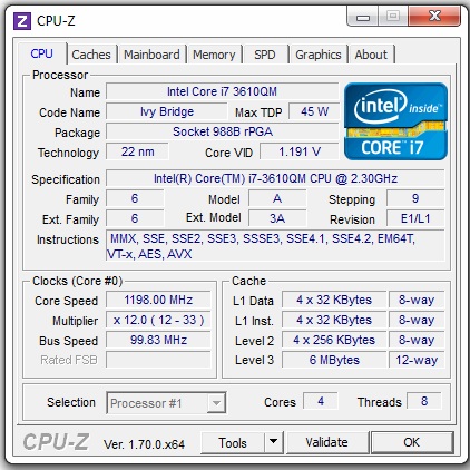 -) Prozessor Intel Core i7 3610QM 2.3Ghz