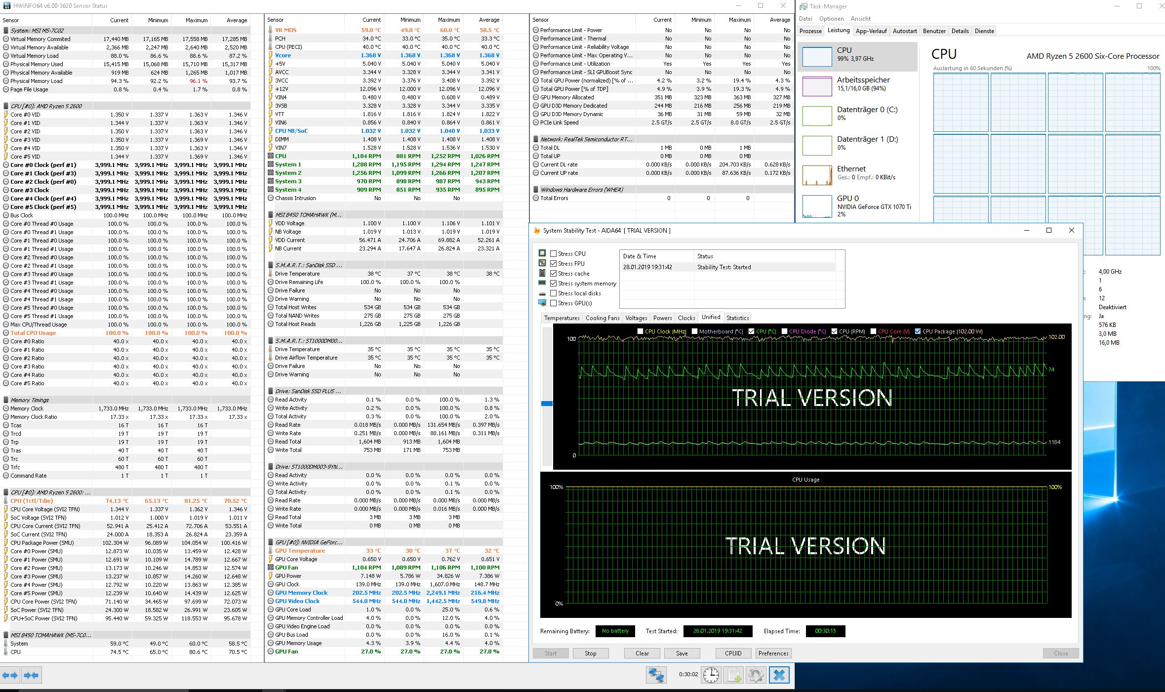 Ich habe nun AIDA64 Extreme mit Cache, FPU und System Memory ausgiebig getestet. Bis jetzt sind keine Fehler in den ca. 2-3h aufgetreten. Nur bei der CPU musste ich wieder gegensteuern. Bei 4,0 GHz kann ich nicht unter 1,3625V gehen, sonst freezt der PC (SoC unverändert bei 1,025 und LLC auf 4).