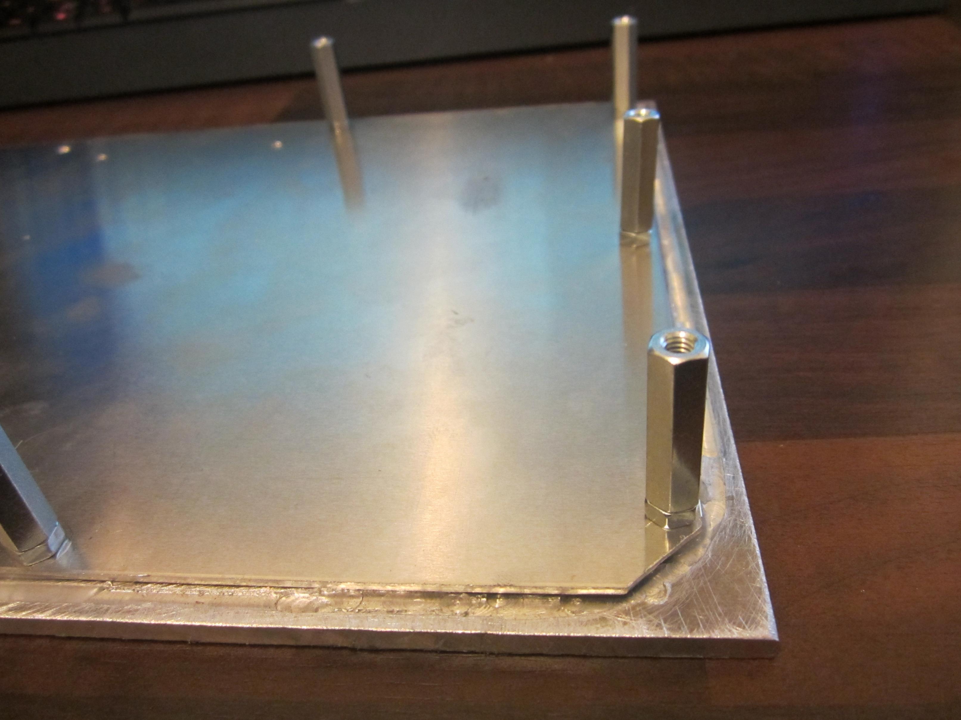 Das Problem war: Wie Befestigt man Abstandsbolzen an einer Aluminium Platte ohne dass man die Schrauben sieht?