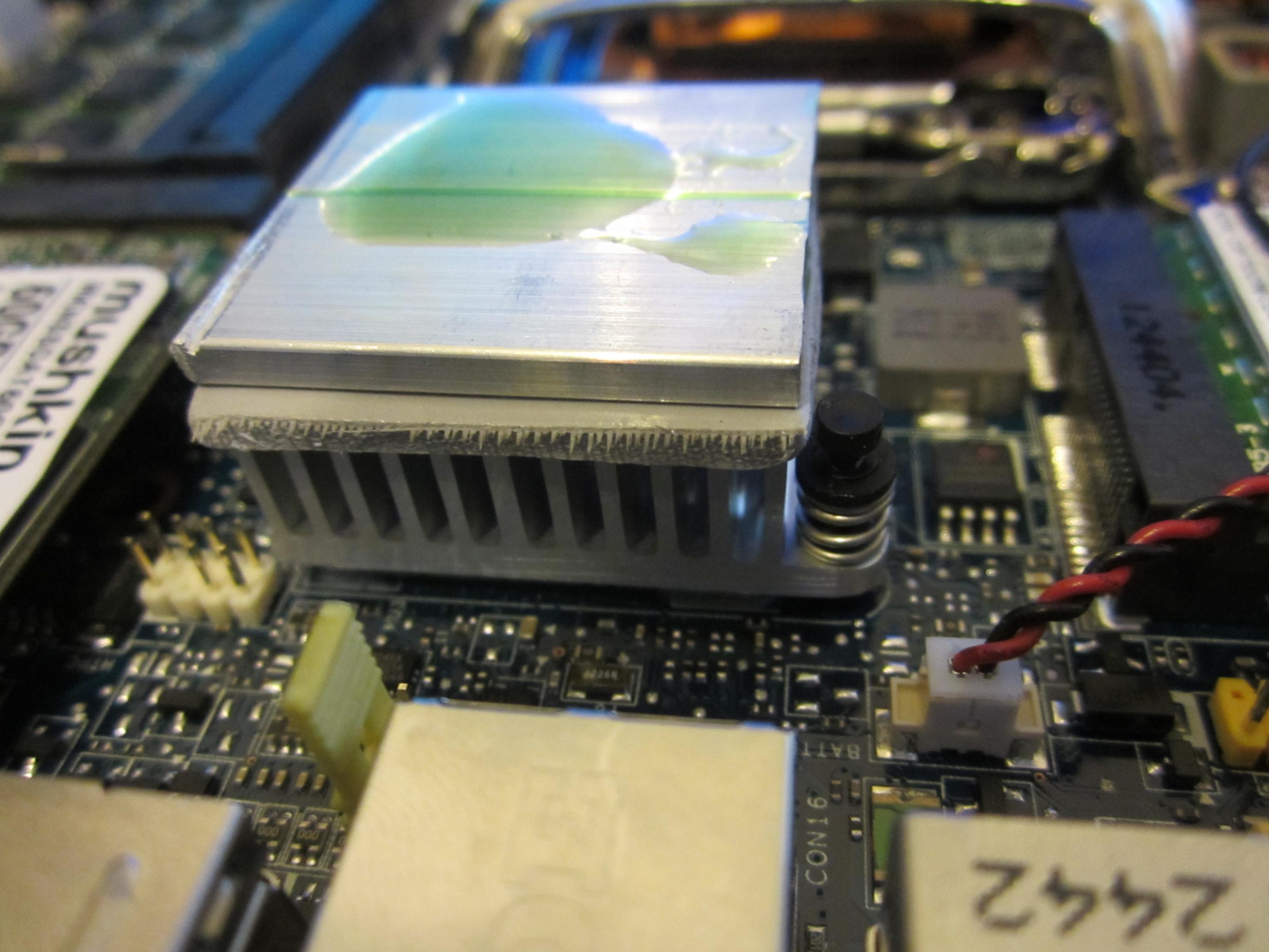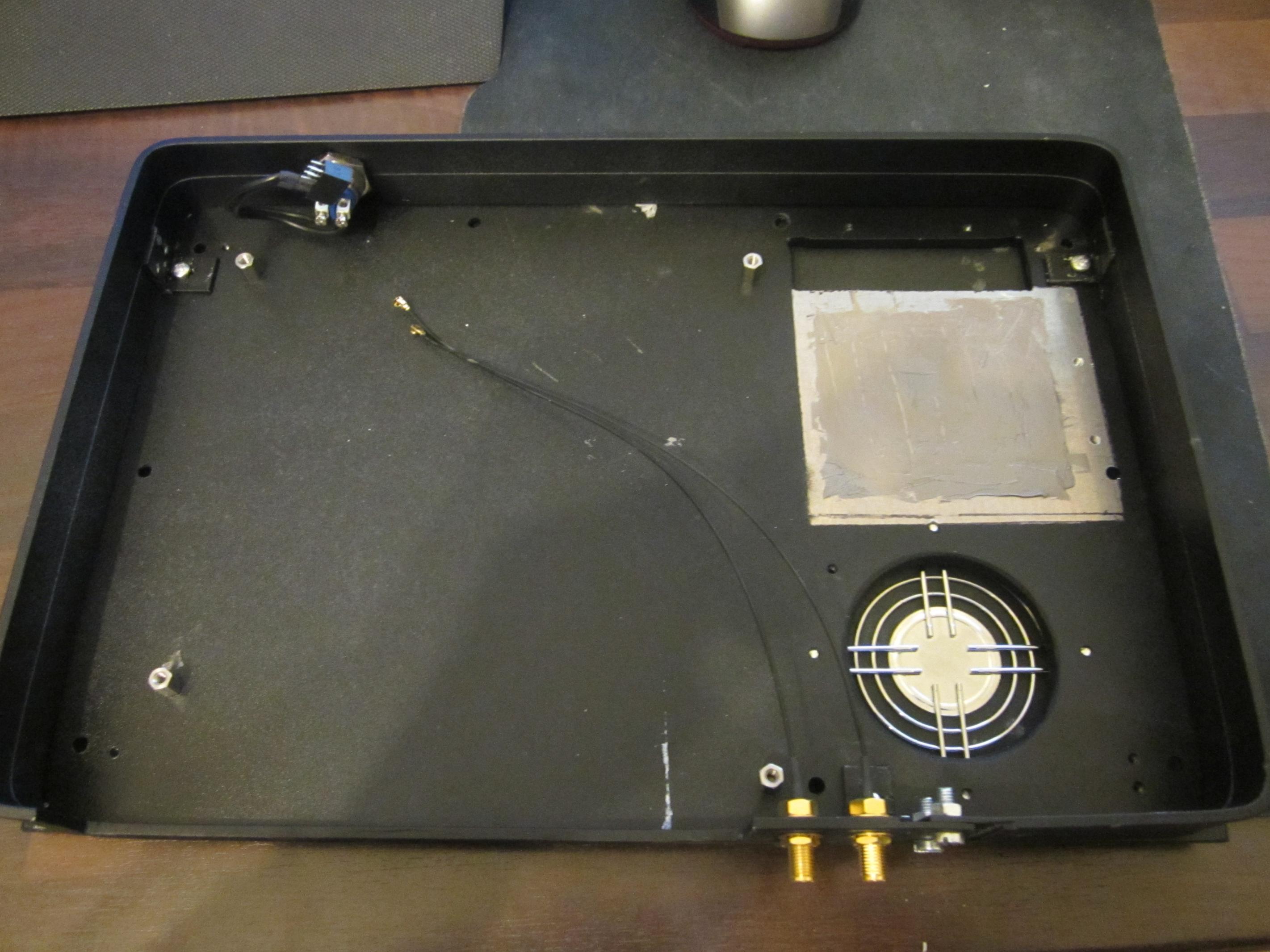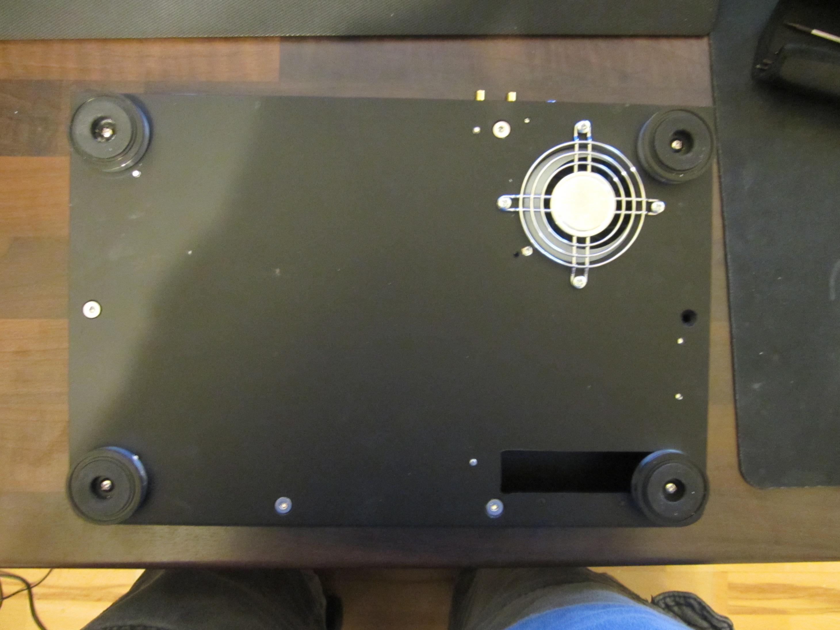 Um die Kühlung zu Optimieren wird der Kühlkörper über Wärmeleitpaste Thermisch an den Boden gekoppelt.