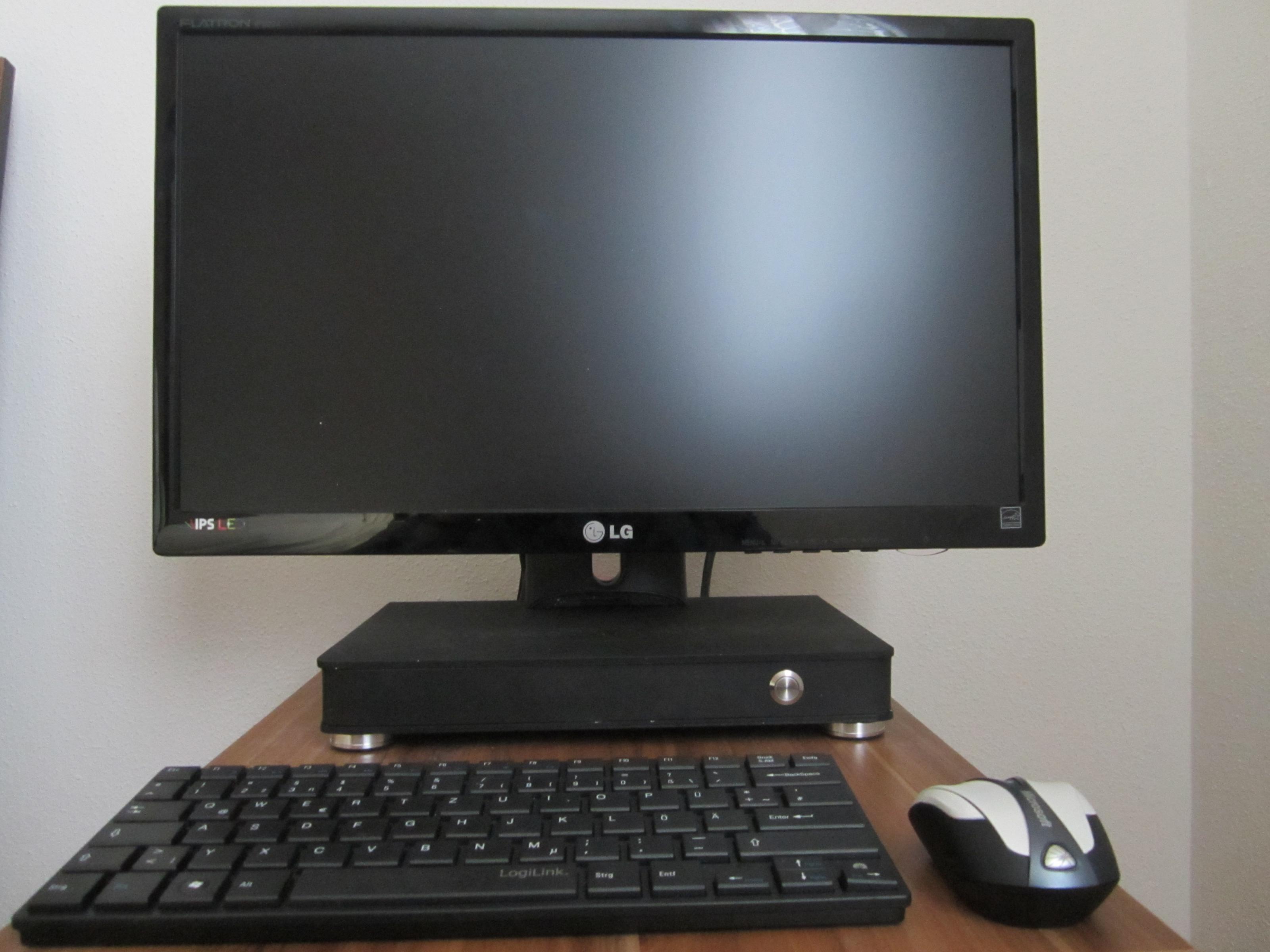 Ziel ist es, den Kompletten PC in den Standfuß eines Monitorhalters zu verstauen.