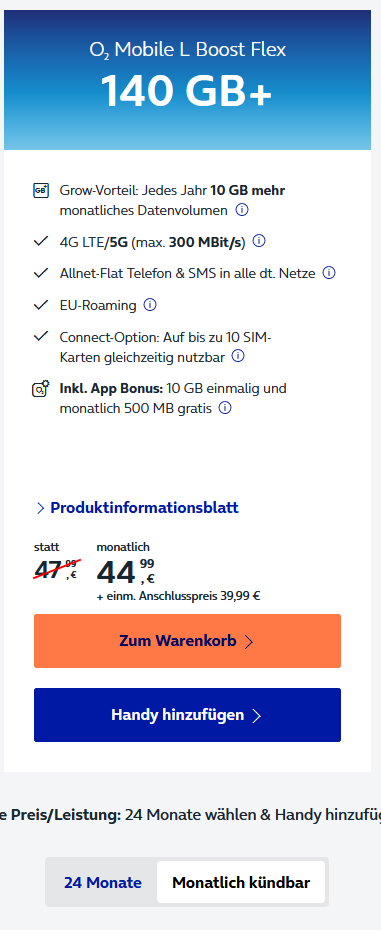 - monatlich kündbar oder echtes Prepaid