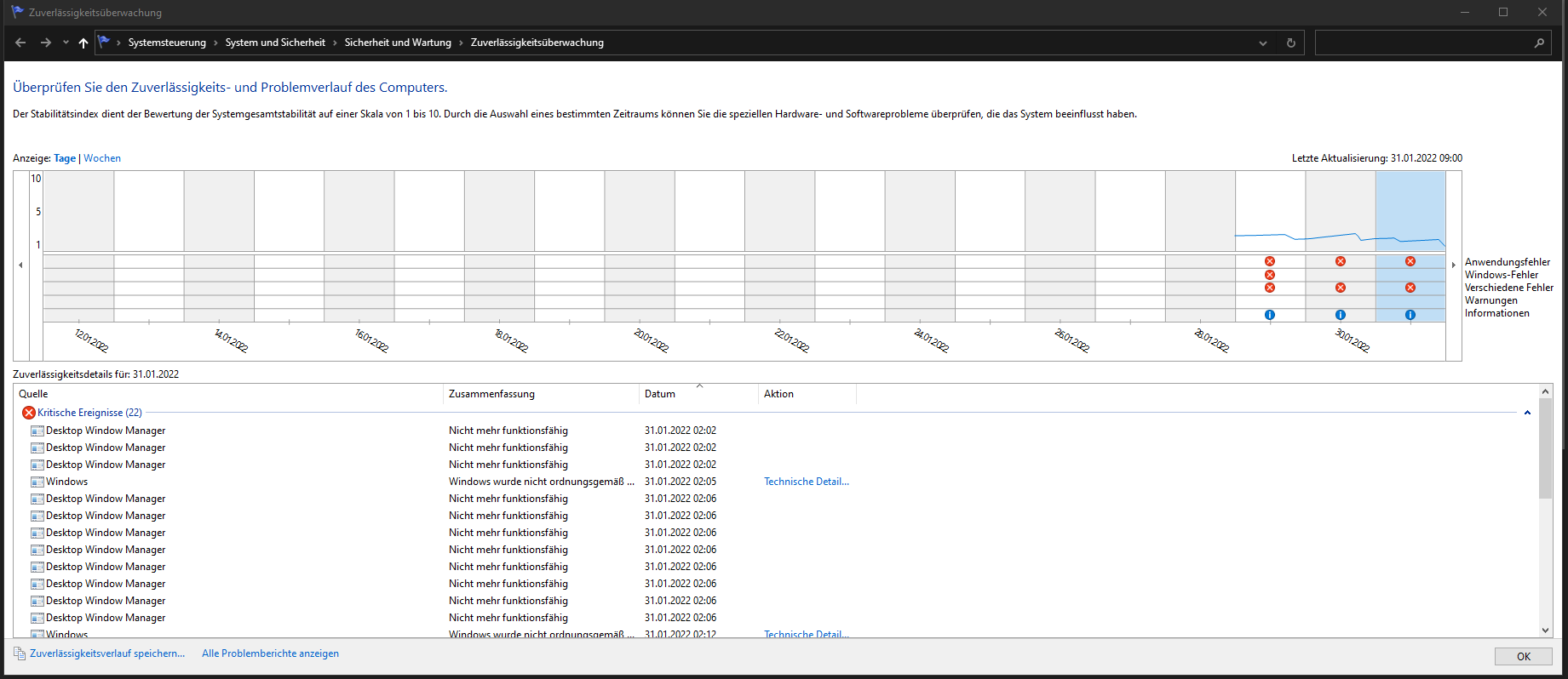- OS: Windows 10 64Bit (circa 1 Tag alt)