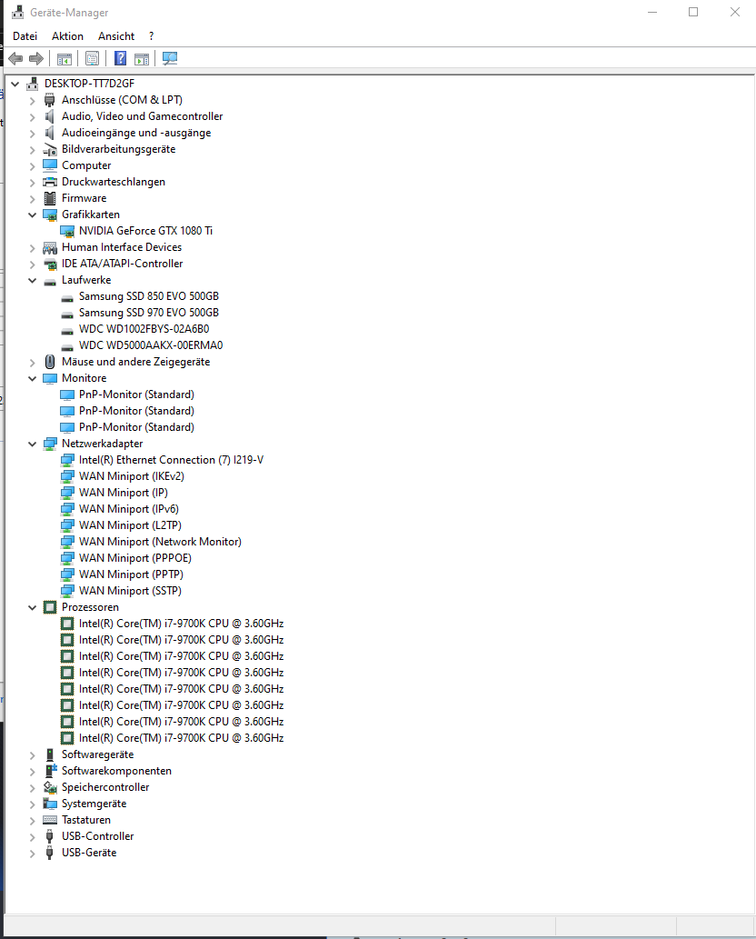 - Prozessor (CPU): I Intel I7 9700K (circa 1 Jahr alt)