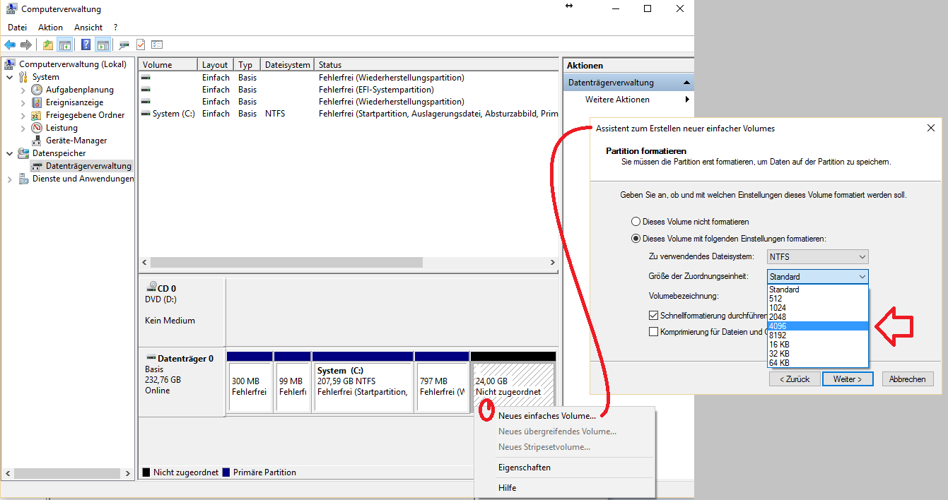 Nimmst du ein Tool wzB "Mini Tool Partition Wizard Home" zum Partitionieren, so läßt sich das bequem einstellen.