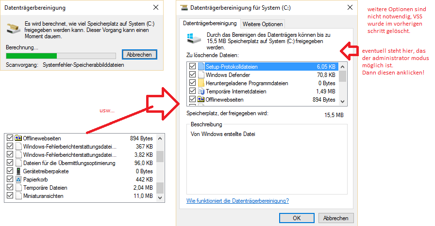 Datenträgerbereinigung (cleanmgr.exe) mit Administratorrechten ausführen.