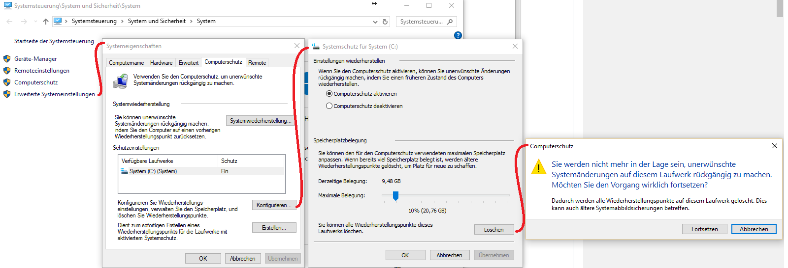 Besagte Windows Wiederherstellungsinformationen (Volumenschattenkopien) löschen.