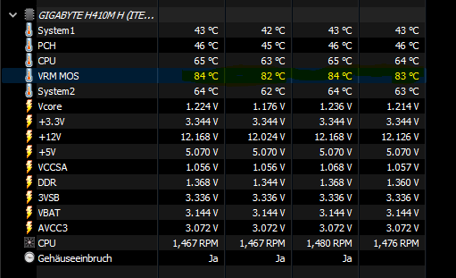 Wenn dann die VRMs (MOS) immer noch so hoch sind, hast du locker über 35°C Raumtemperatur oder irgendwas anderes läuft schief.