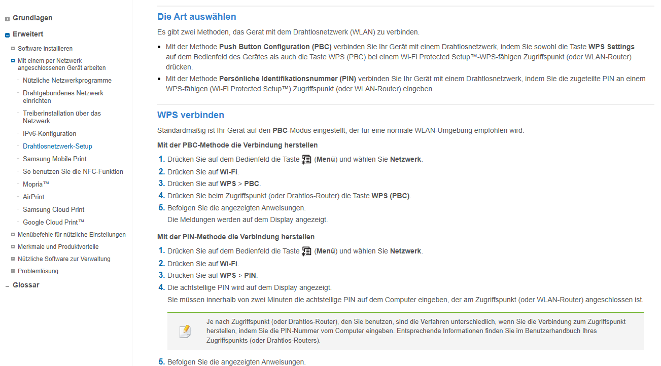 Es gibt noch die Möglichkeit am Drucker mit WPS-Pin (8-stellig).