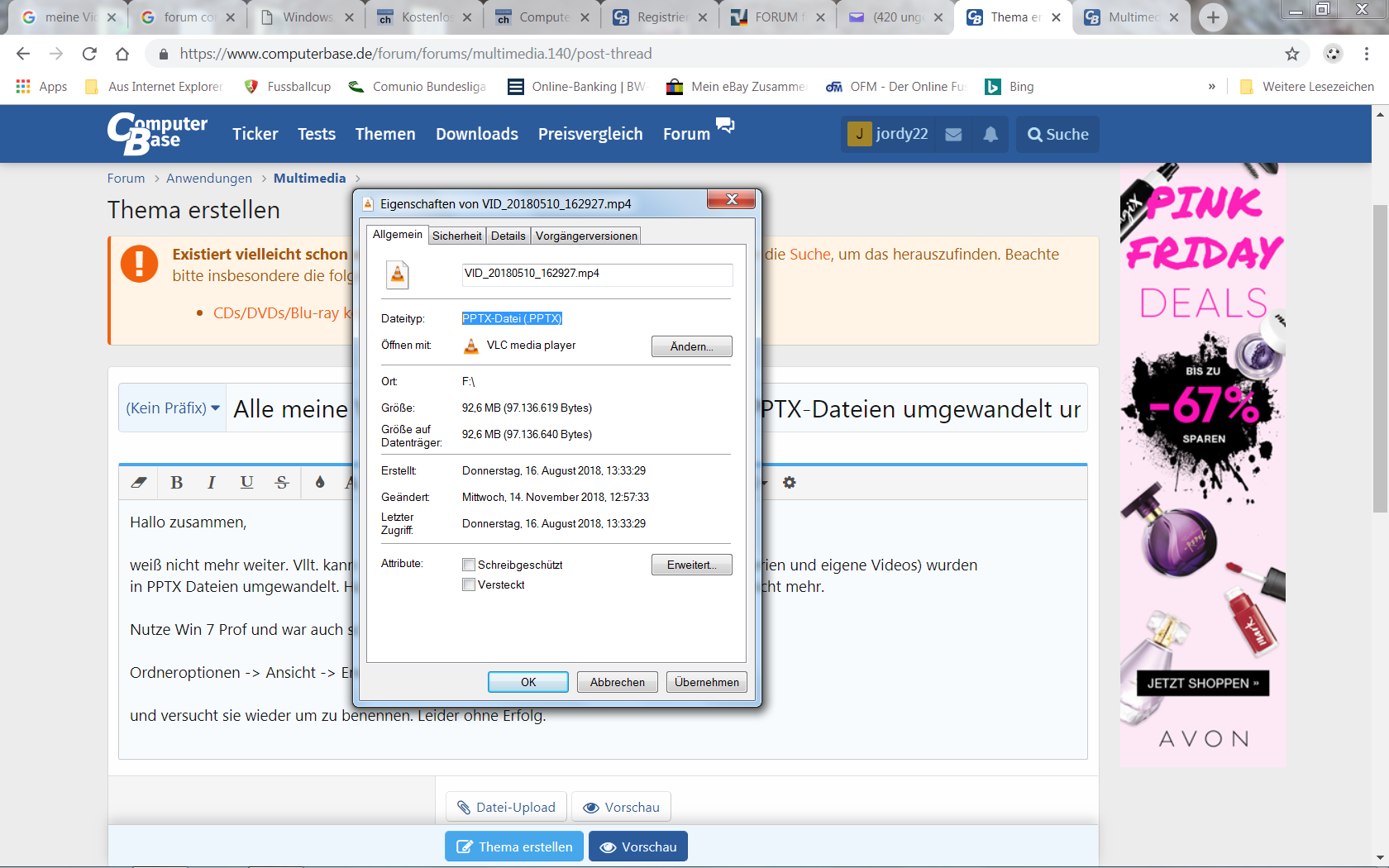 Meine ganzen Videos (Filme,Serien und eigene Videos) auf der FP wurden in PPTX Dateien umgewandelt. Habe wohl eine falsche EMail Datei oder so geöffnet. Weiß nicht mehr. Ein Virus ist nicht (mehr) auf meinem Rechner.