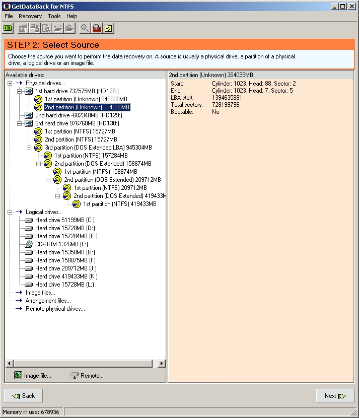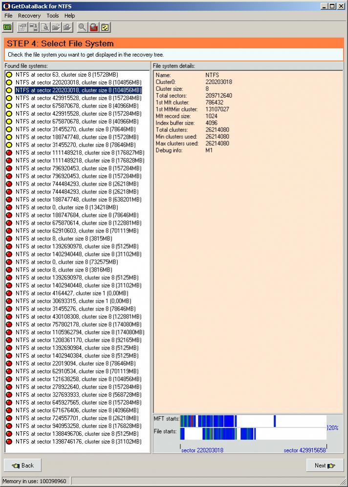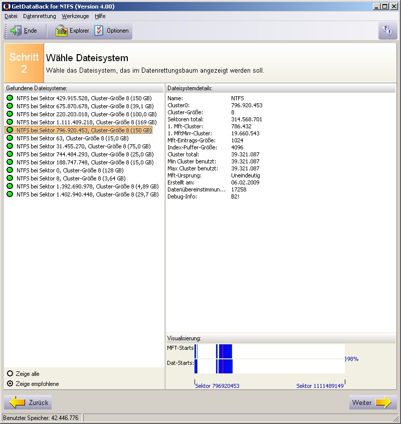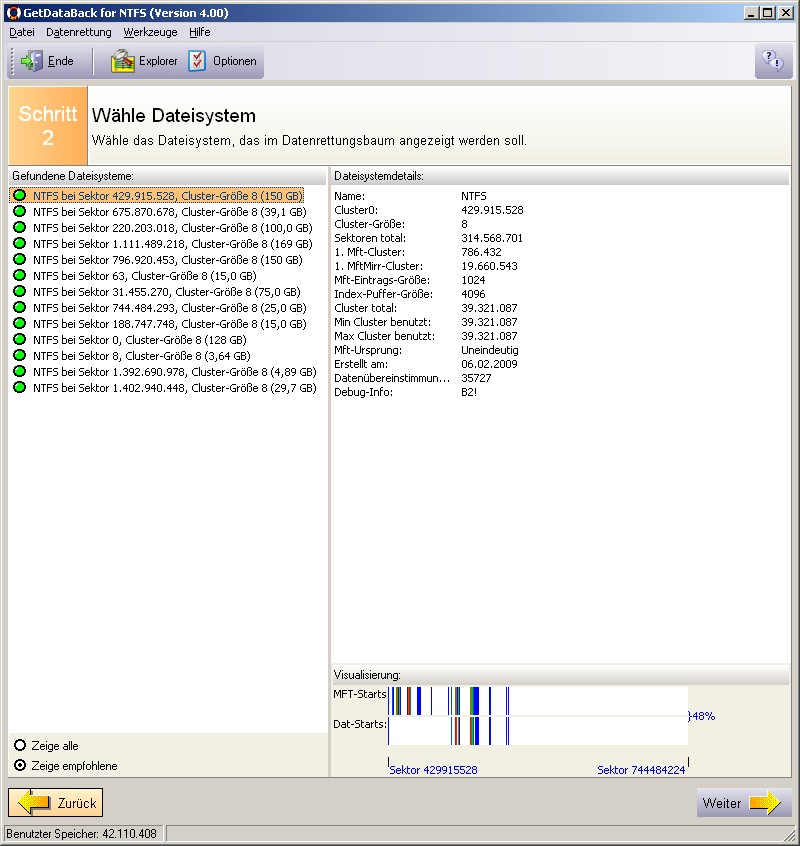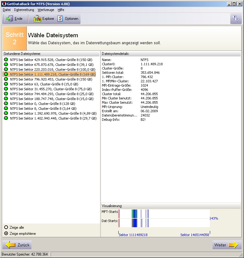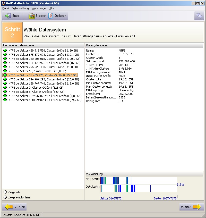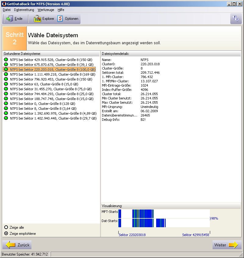 Dies Programm zeigt mir übrigens 360000 Dateien an; Ontrack EasyRecovery findet nur ein Sechstel davon wieder, davon die Hälfte temps und so'n Schrott, und bei der anderen Hälfte die Hälfte unlesbar beschädigt.