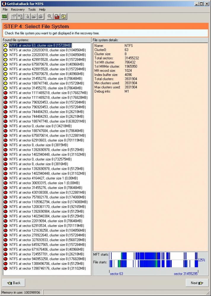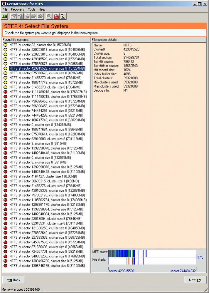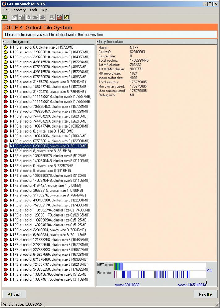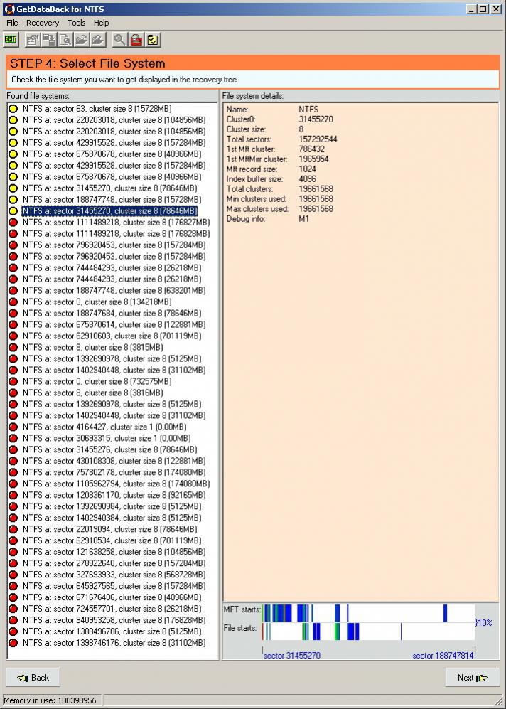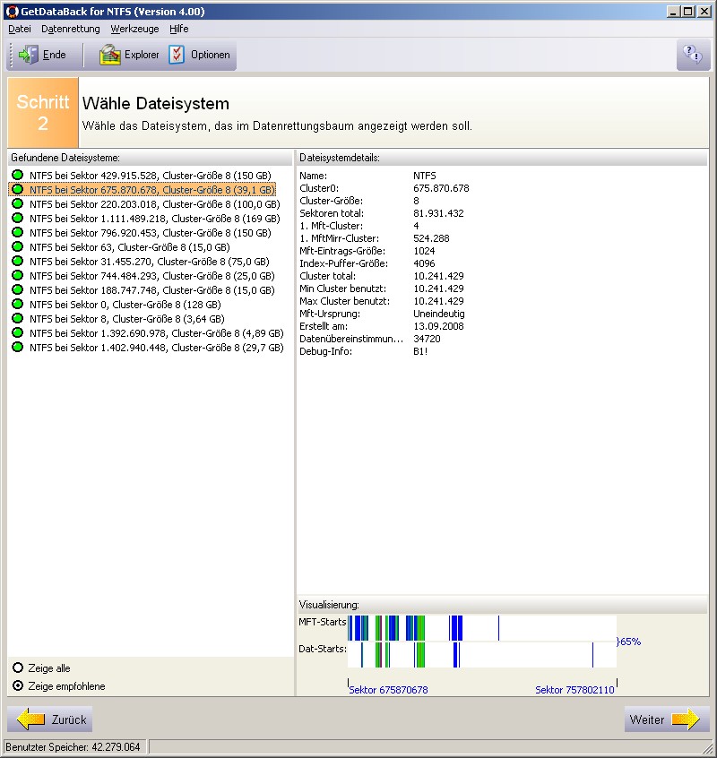 Die Testversion vom Easis Data LifeSaver 3.82 listet mir hübsch die Beginne von meinen Festplatten auf. Nicht GANZ genau, aber doch hinreichend und mit den Sektoren, wo sie beginnen: