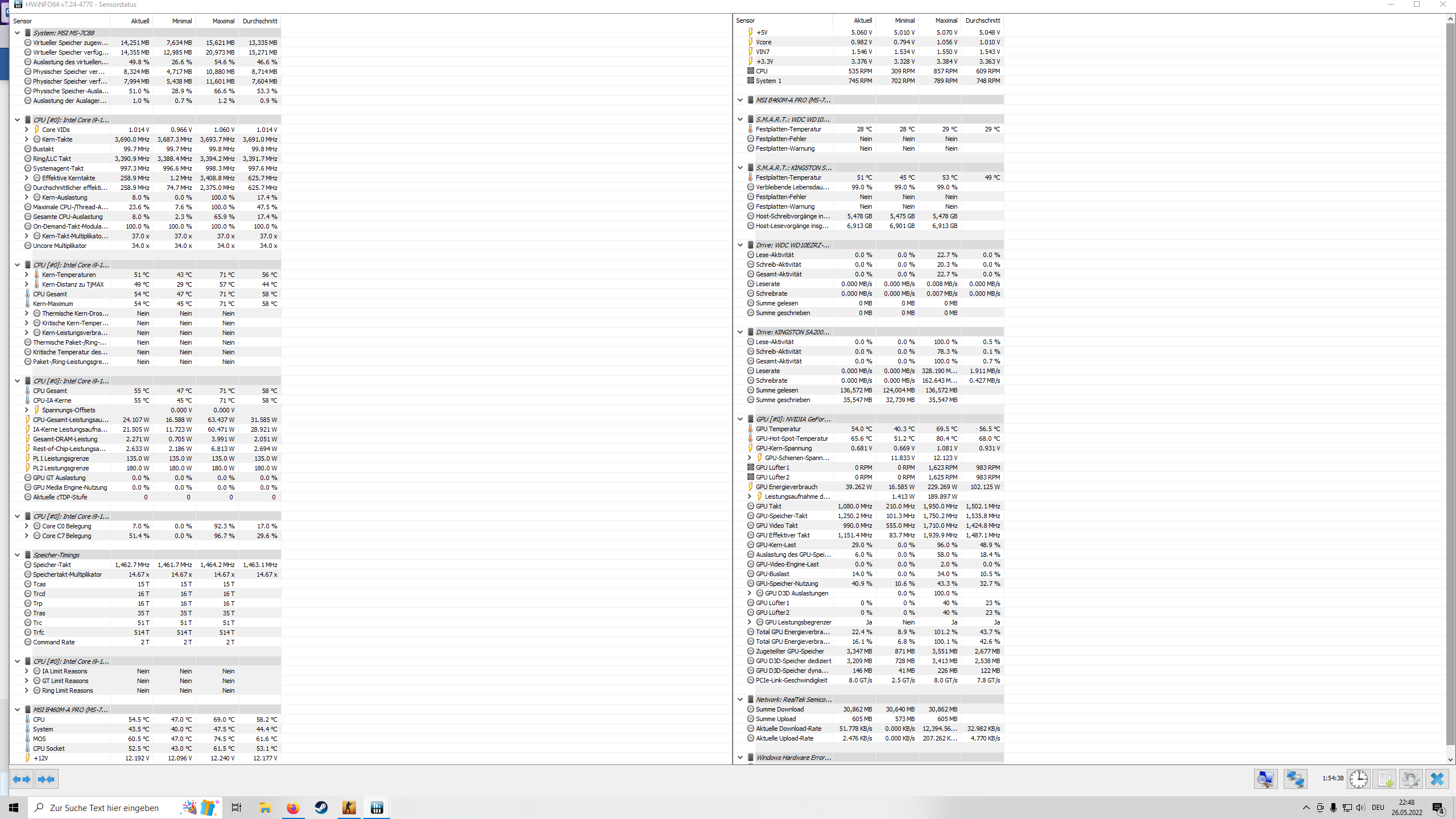 Also, selbst wenn das irgendein Oldie Spiel ist oder was Top Modernes- egal, da müsste ramba zamba sein bei den CPU Taktraten. wenigstens ein paar Sekunden lang müsste sich da hier und da mal Bewegung einstellen. Aber da steht was ziemlich fest liegendes auf 3,7 GHz. Die Abweichungen sind so klein, das man sagen kann die CPU läuft fest auf exakt dem Takt mit allen Kernen.