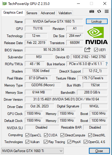 - Grafikkarte: MSI Nvidia Geforce Gtx 1660 ti