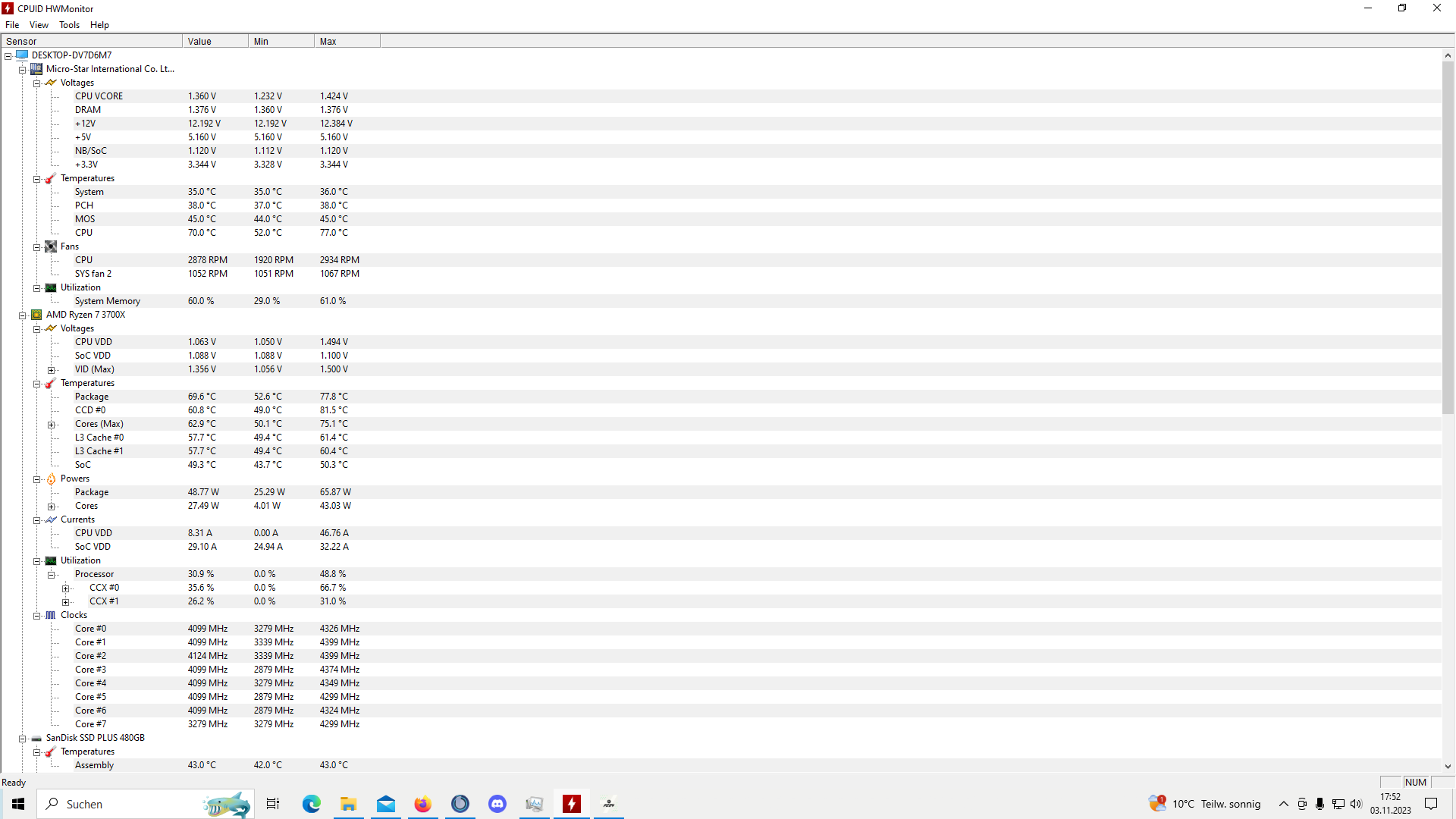 - Prozessor (CPU): AMD Ryzen 3700x 8-core