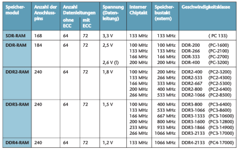 Im Anhang ist ein Bild mit den Geschwindigkeitsklassen von SDR, DDR, DDR2, 3 und 4.