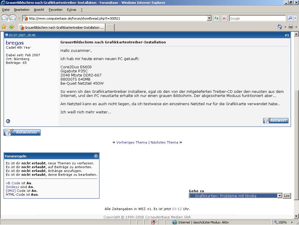In den letzten Woche fällt mir die Fehleranfälligkeit der 8800gt immer mehr auf. Vor allem die Beschwerden hier im Forum.