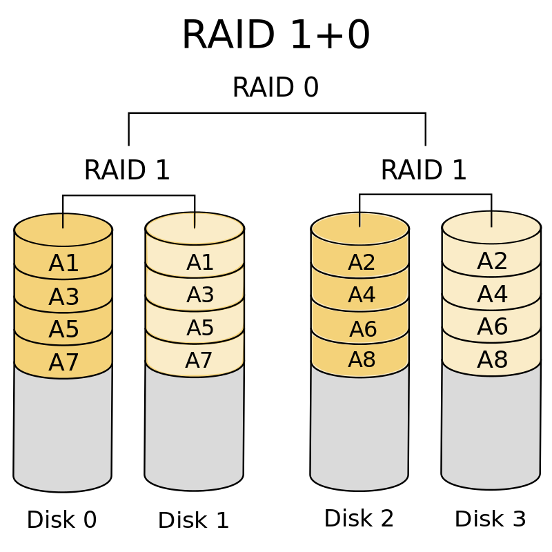 mit 4 bestückten 10 TB Festplatten im RAID 10 Modus.